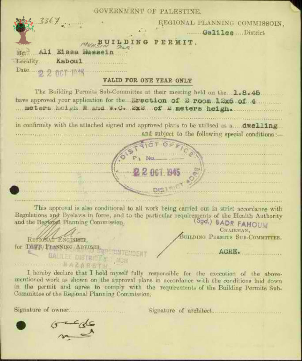 طلب رخصة بناء - علي عيسى حسين - كابول