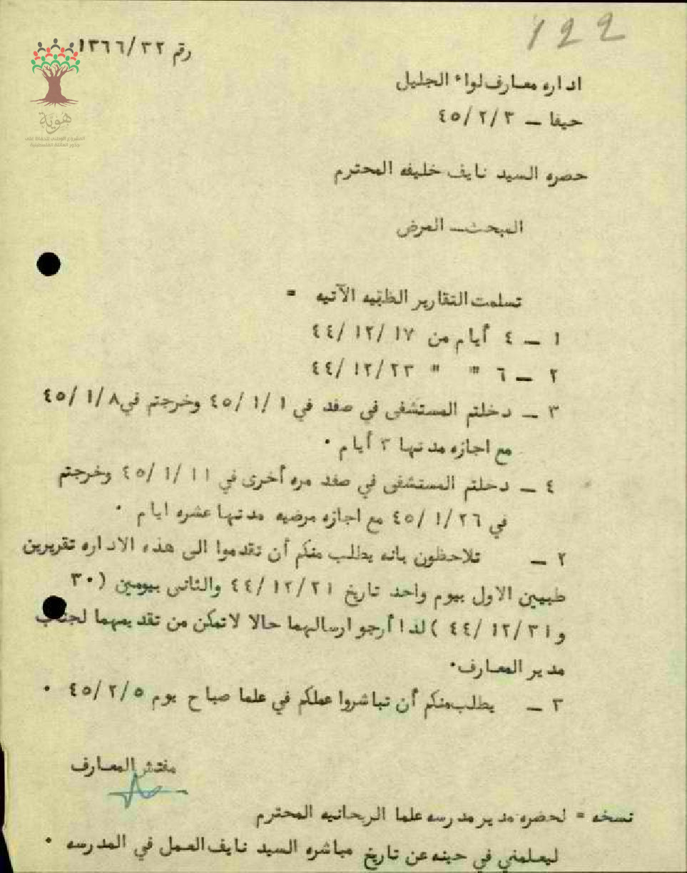 غياب المعلم نايف خليفة - صفد من مدرسة علما الريحانية