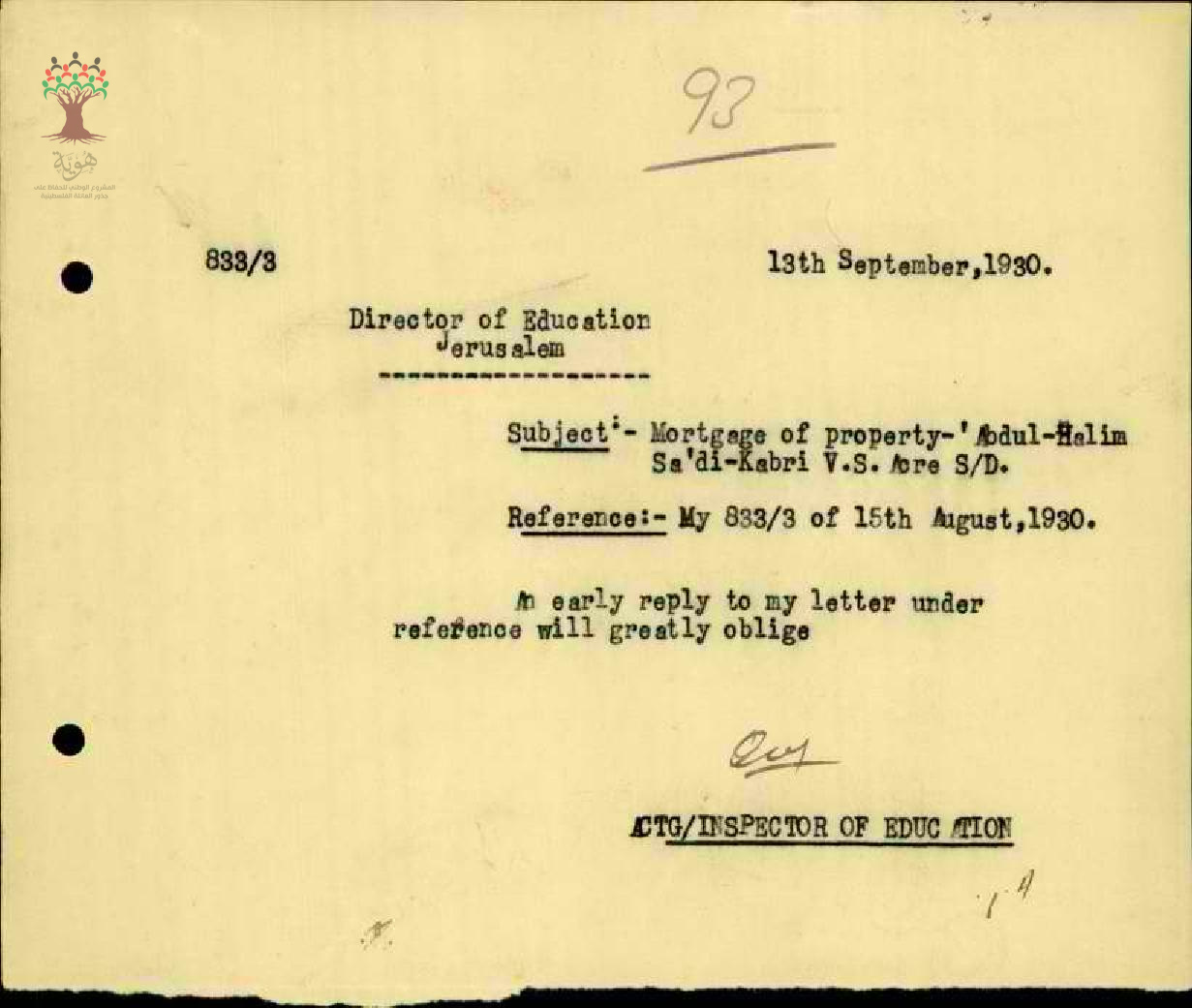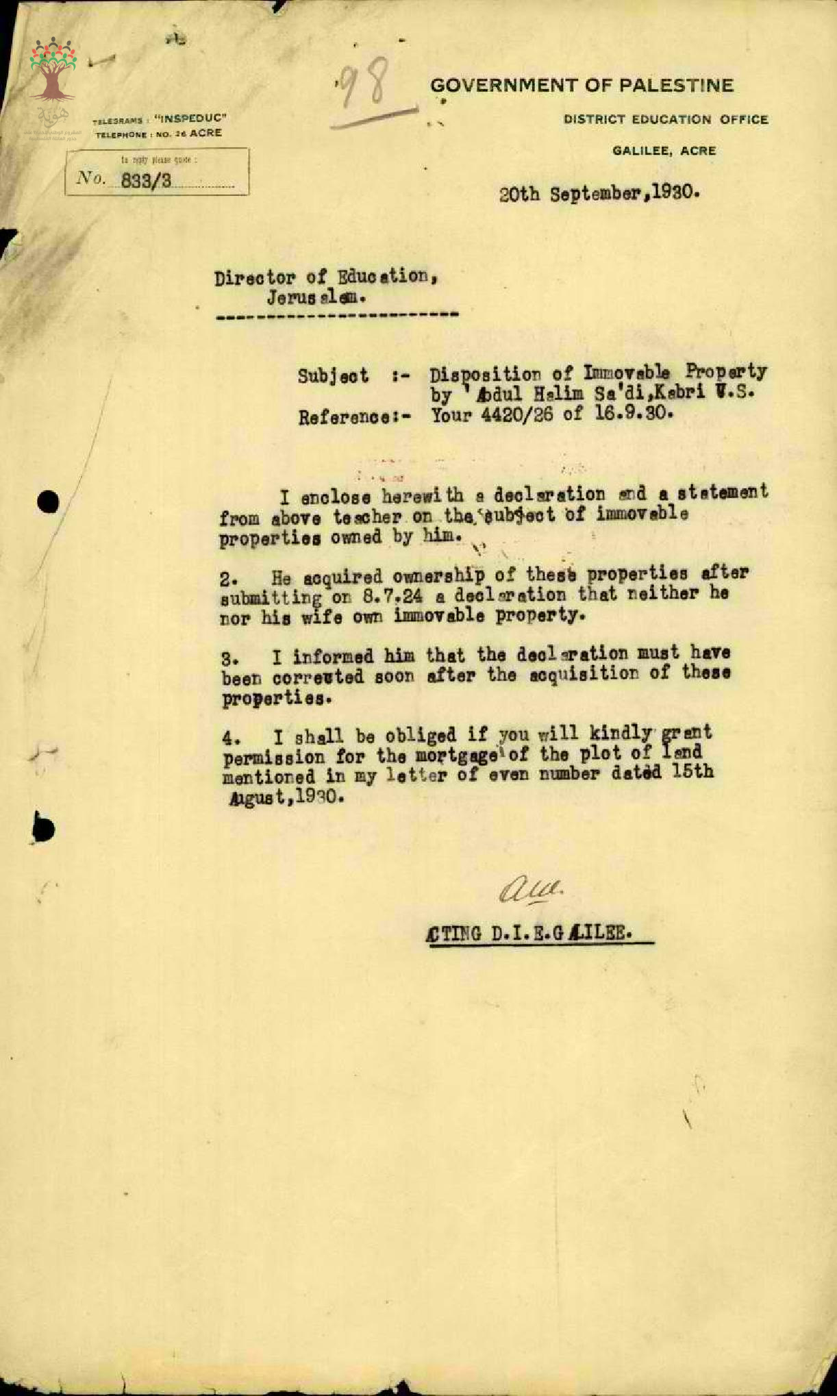 مجموعة رسائل بخصوص الأملاك الغير منقولة للمعلم عبد الحليم السعدي ورهن جزء منها