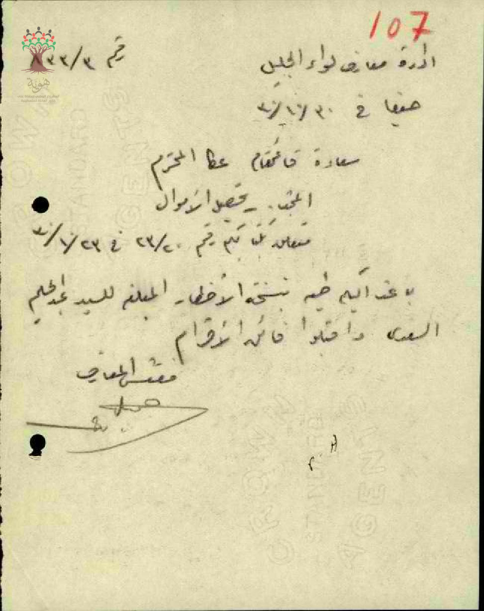 رسائل بخصوص تحصيل أموال للمعلم عبد الحليم السعدي