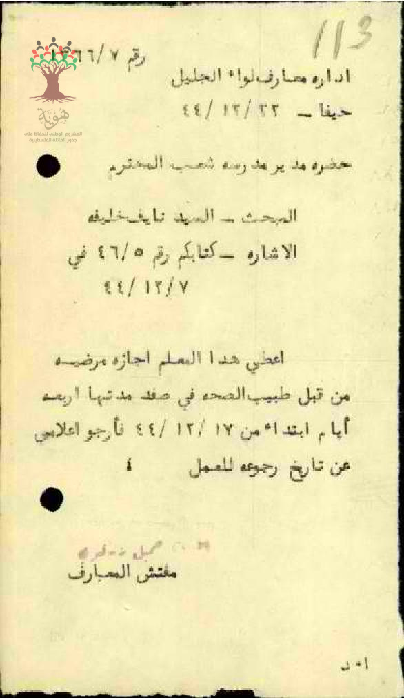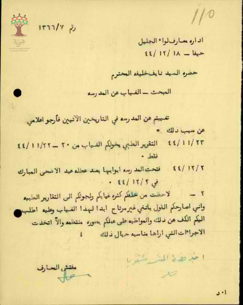 غياب المعلم نايف خليفة - صفد من مدرسة شعب