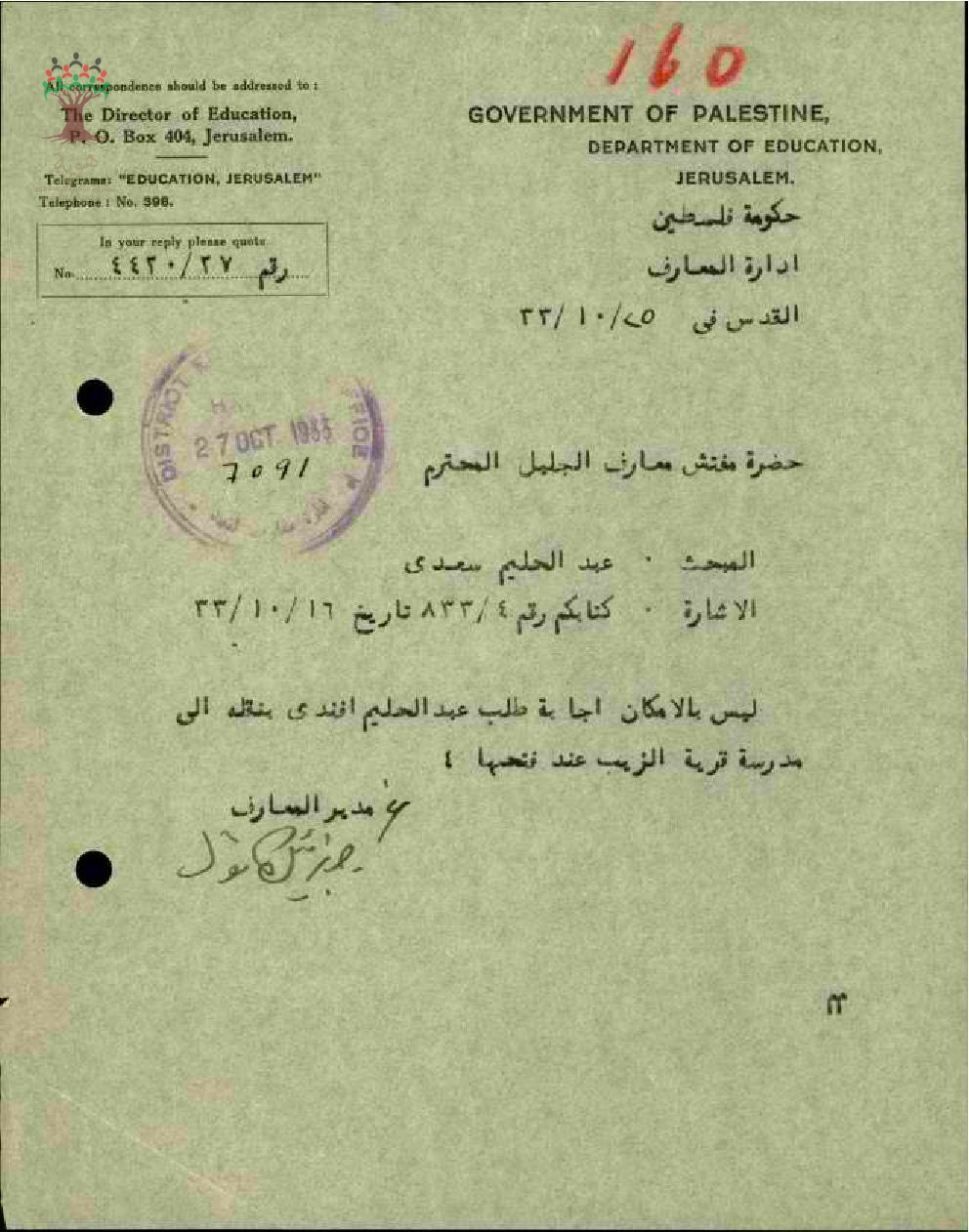 رسائل بخصوص عدم امكانية نقل المعلم عبد الحليم السعدي الى الزيب