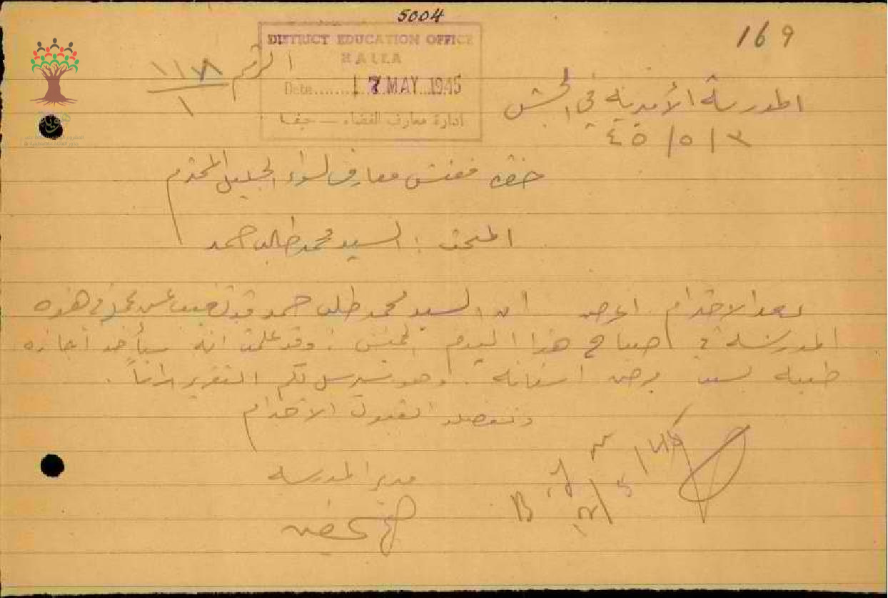 رسالة من مدير مدرسة الجش الى مفتش المعارف بخصوص تغيب المعلم محمد حمد