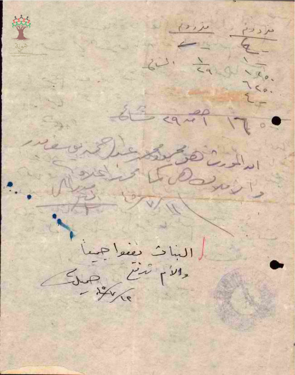 رسالة من رقية سليمان أبو صعب إلى قائمقام قضاء الخليل