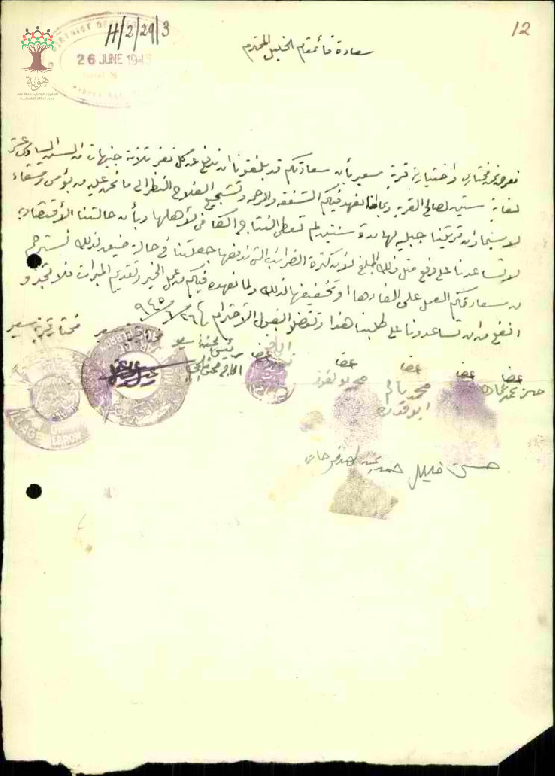 رسالة من مختاري واختيارية قرية سعير إلى قائمقام قضاء الخليل