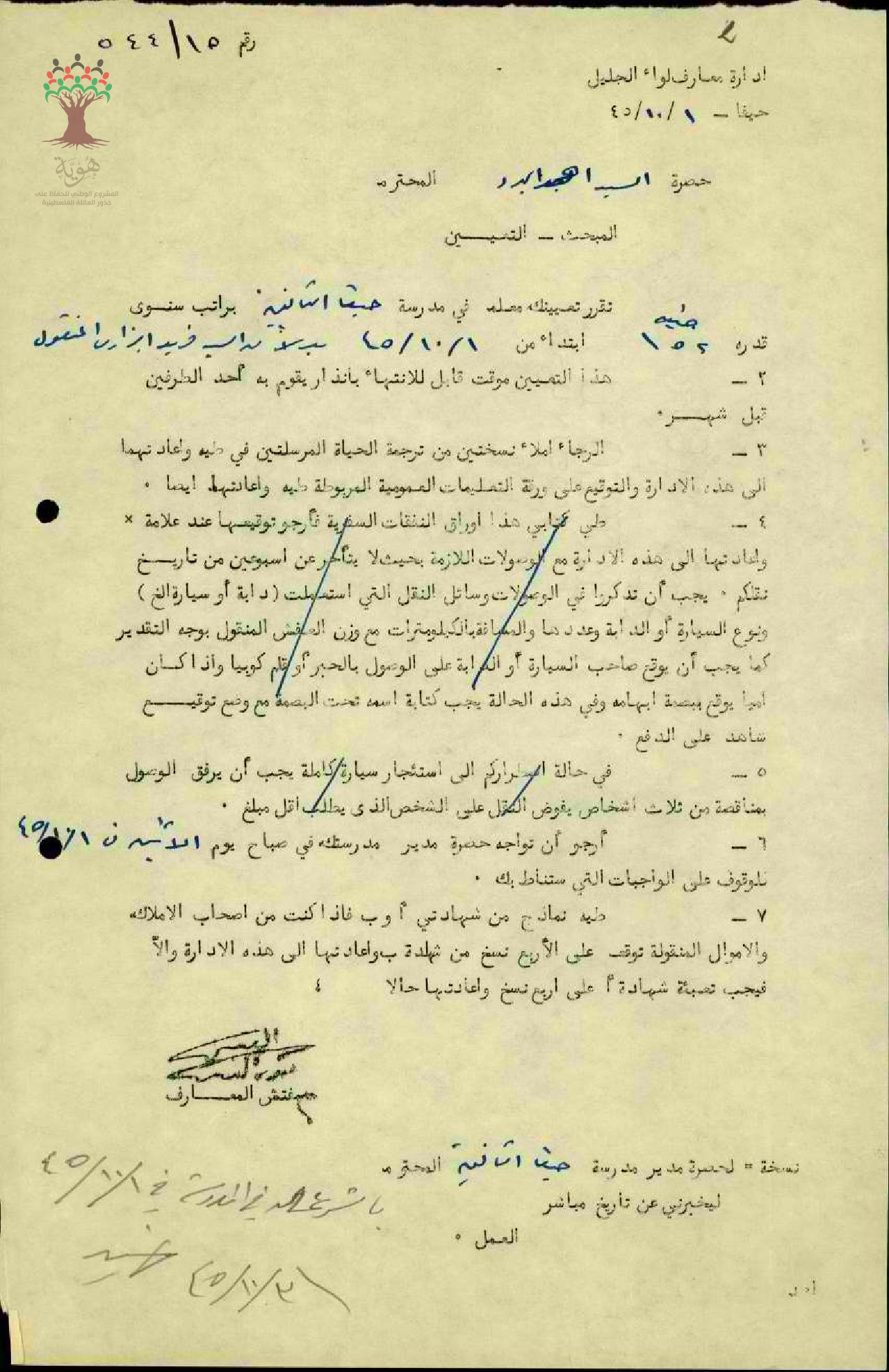 تعيين المعلم أحمد ابراهيم البرد في مدرسة حيفا