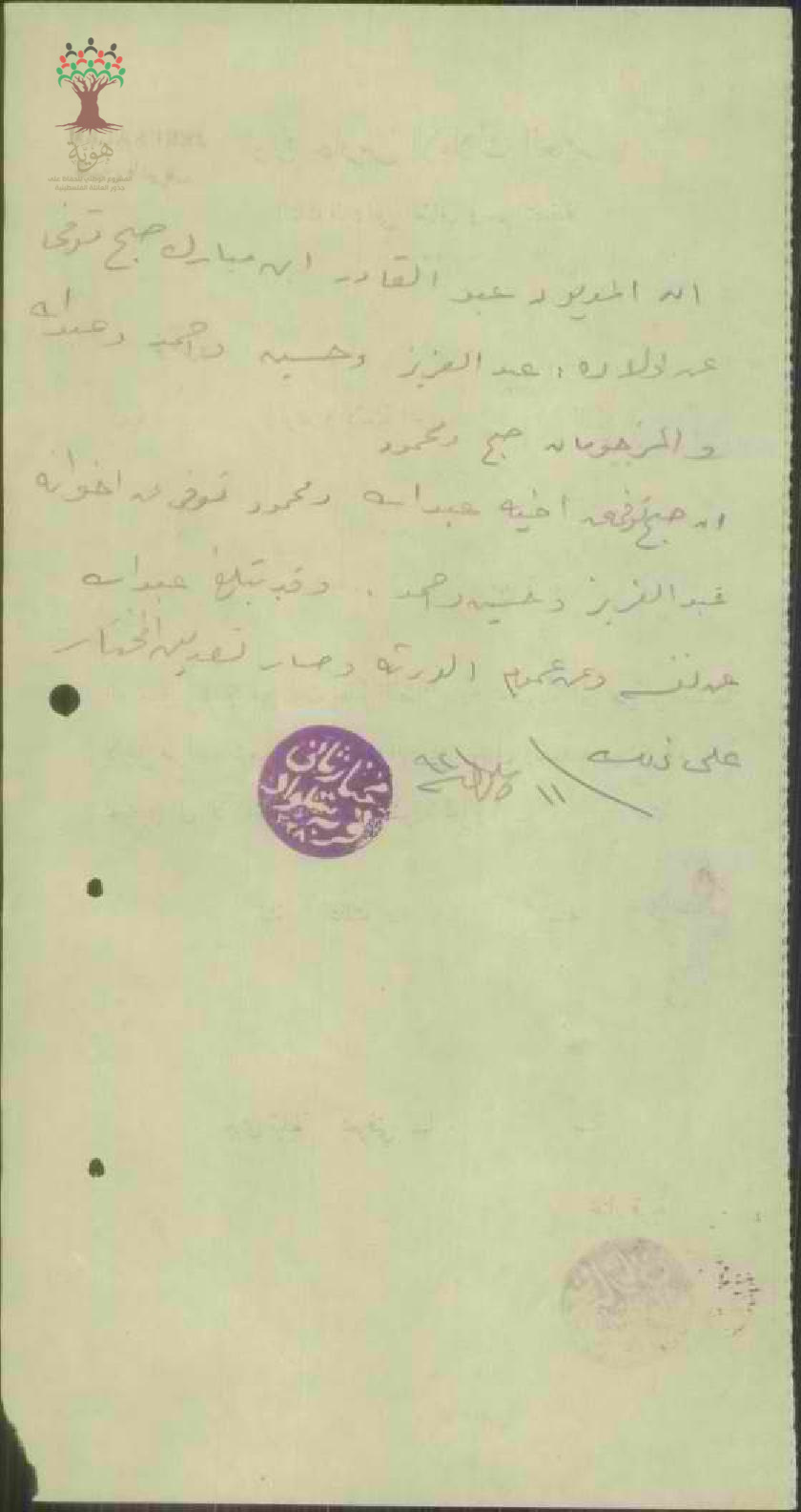 رسالة من البنك الزراعي العثماني إلى عبدالقادر مبارك صبح / سلواد لتسديد الديون