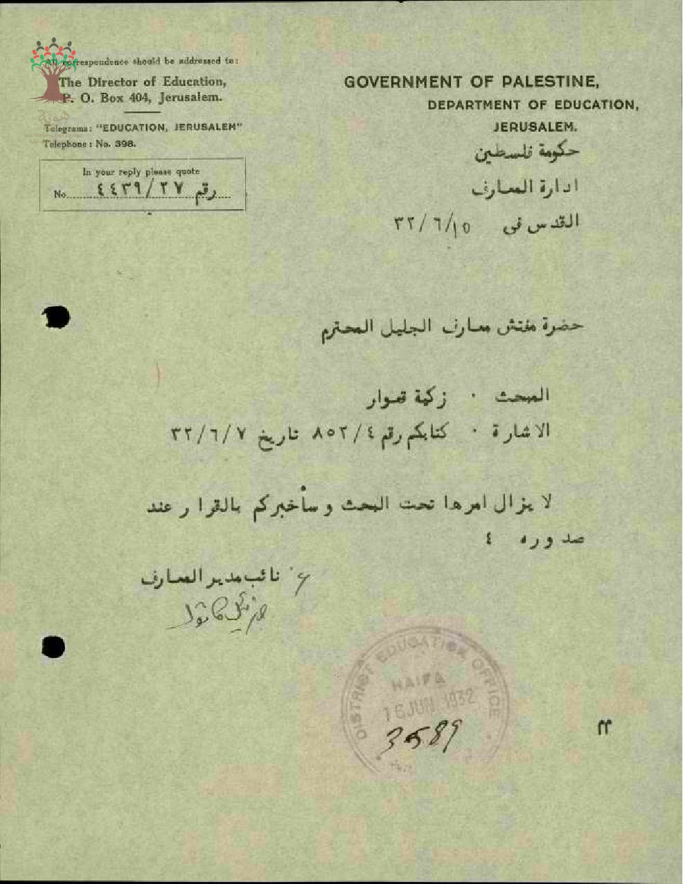 مجموعة رسائل بخصوص مكافأة الزواج للمعلمة زكية قعوار