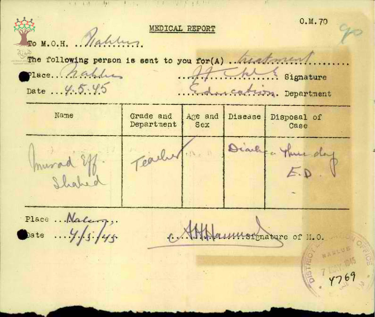 تقرير طبي عن غياب المعلم مراد الشاهد-مدرسة سيلة الحارثية