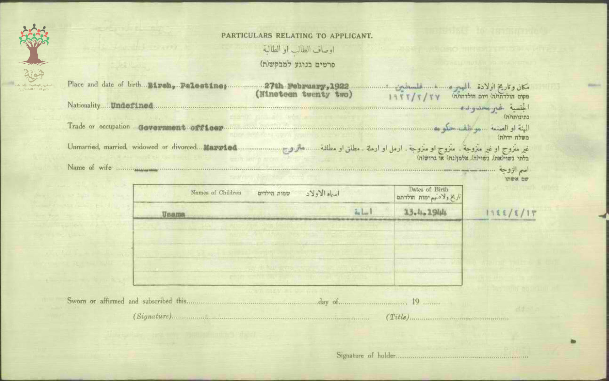 شهادة الجنسية الفلسطينية - محمد مرشد رشيد