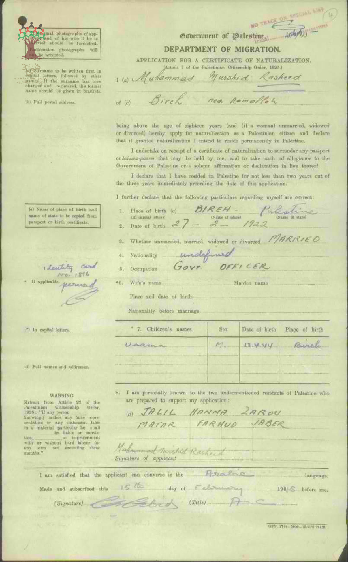 طلب الجنسية الفلسطينية - محمد مرشد رشيد - البيرة