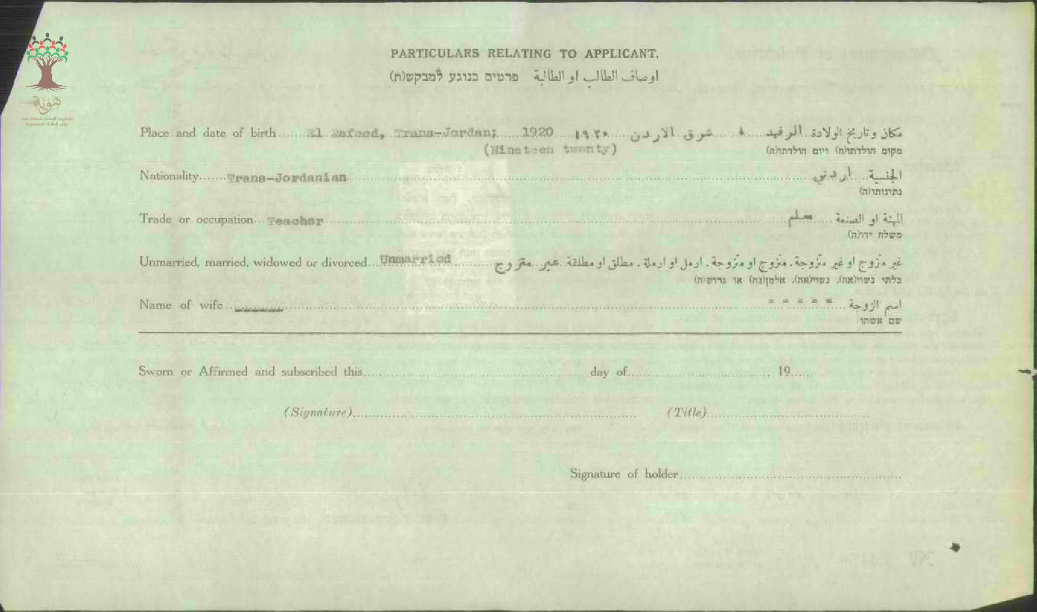 شهادة الجنسية الفلسطينية - ناجي خوري اليوسف - المغار طبريا