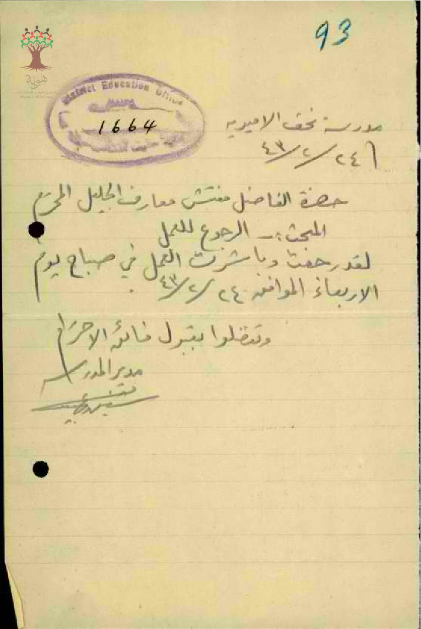 عودة الاستاذ شفيق عبيد الى العمل في مدرسة نحف - عكا