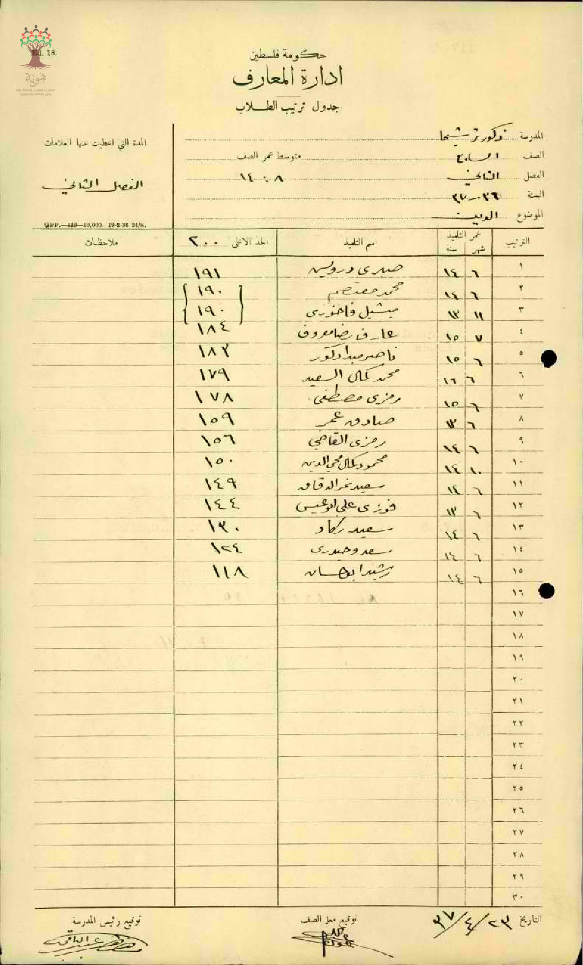 علامات مادة الدين - مدرسة ترشيحا - ذكور - 36-37