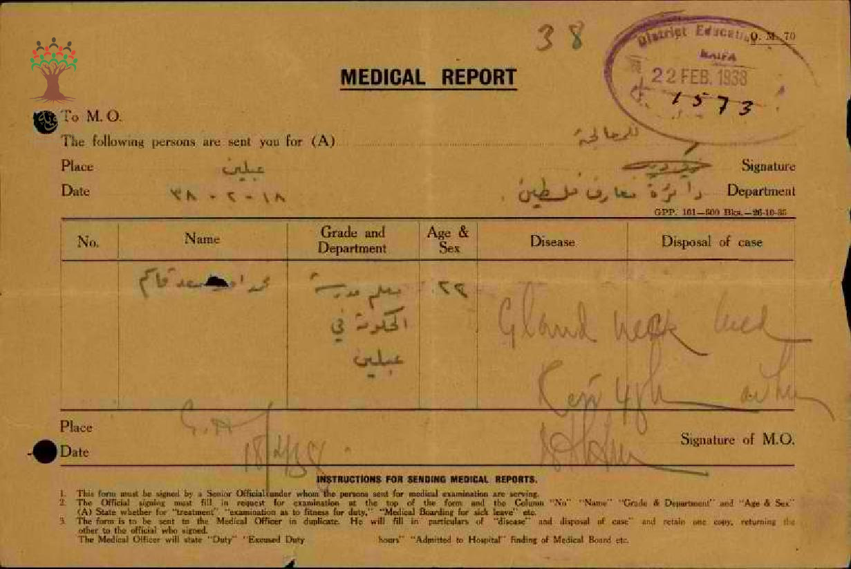 تقرير طبي عن غياب المعلم محمد قاسم-مدرسة عبلين