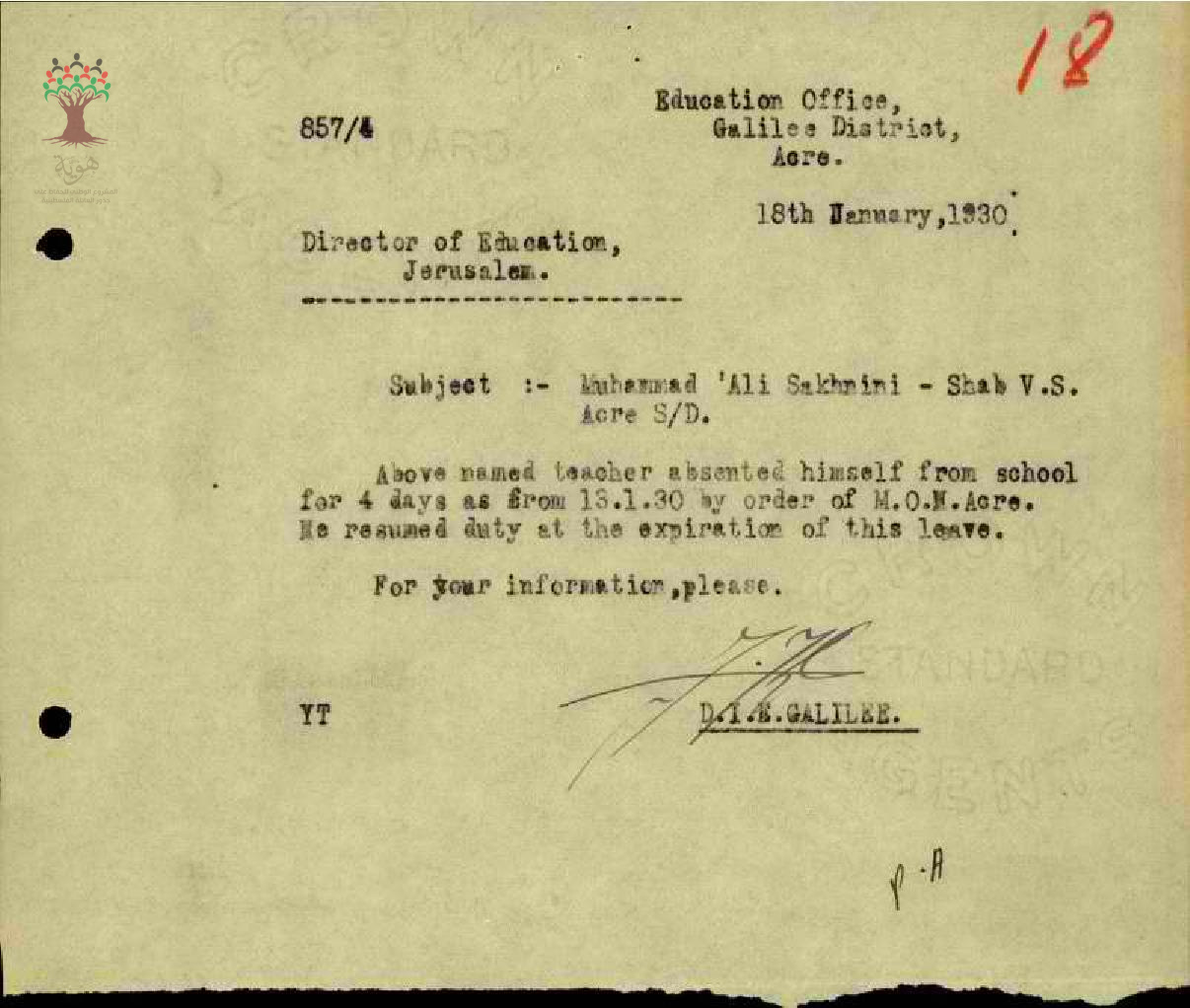عودة المعلم محمد علي سخنيني - سخيني - مدرسة شعب