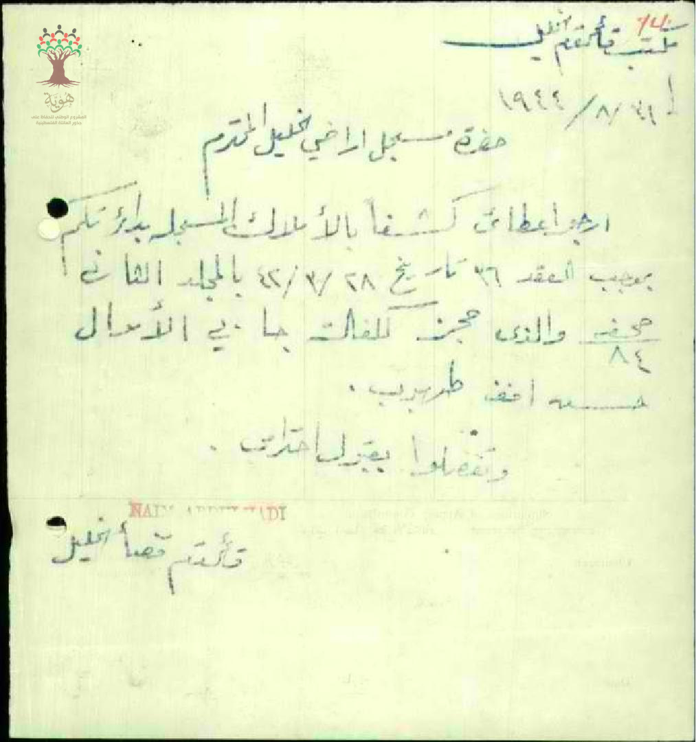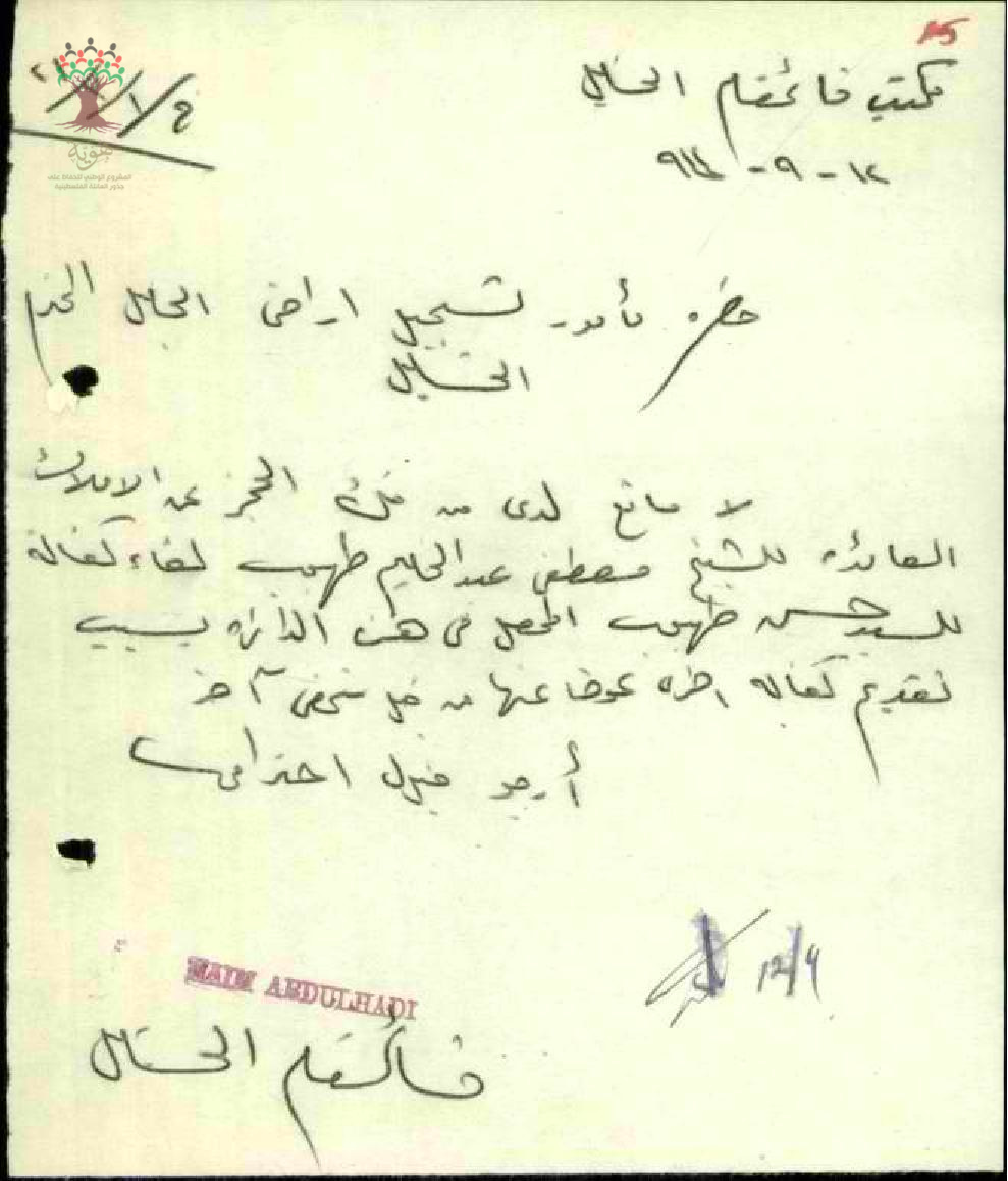 الشيخ مصطفى عبدالحليم طهبوب يطلب سحب كفالة حسن طهبوب بداعي بيع أملاكه للسيد اعرابي رمضان احريز من الخليل