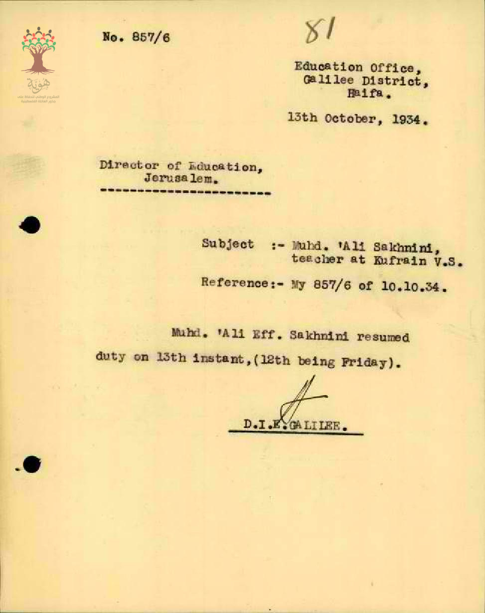 عودة المعلم محمد علي سخنيني - سخنين - مدرسة الكفرين
