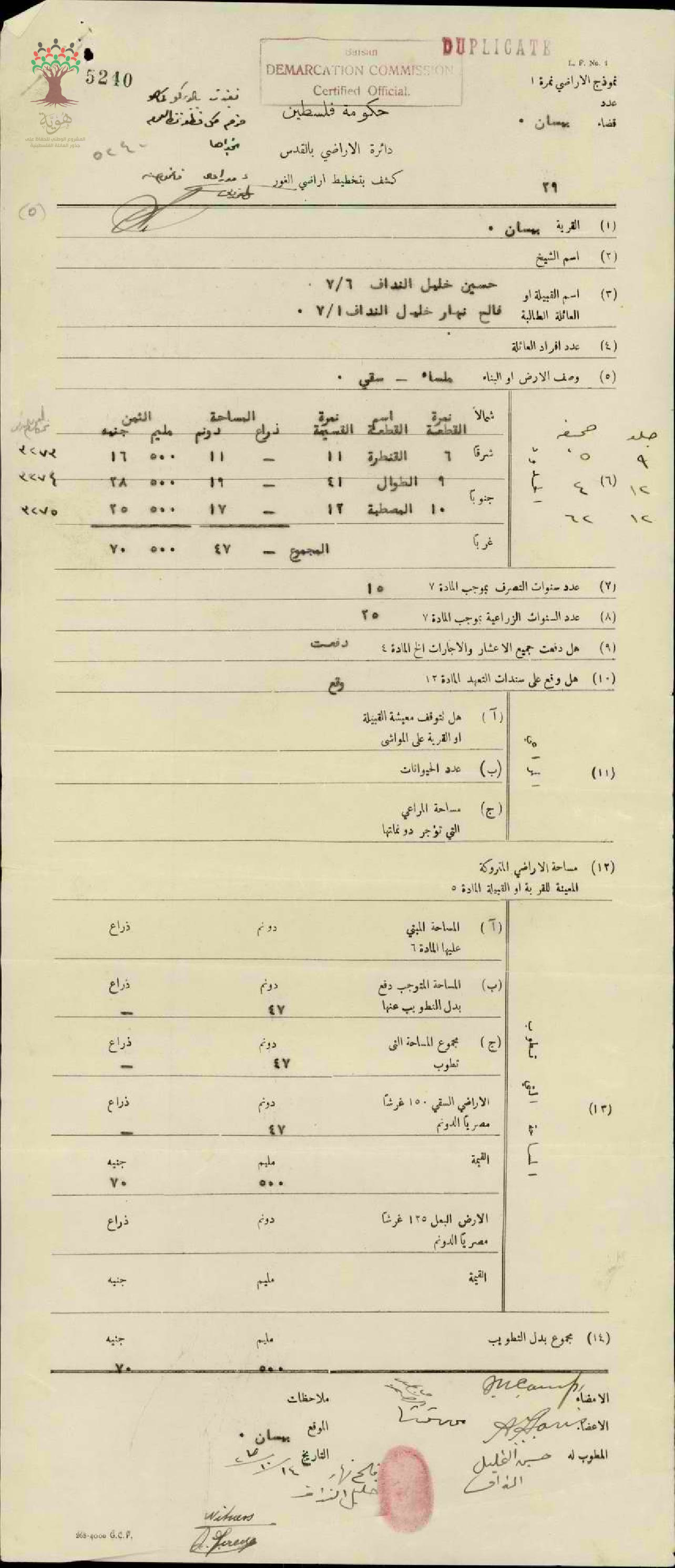 كشف تخطيط أرض أبناء خليل النداف في بيسان