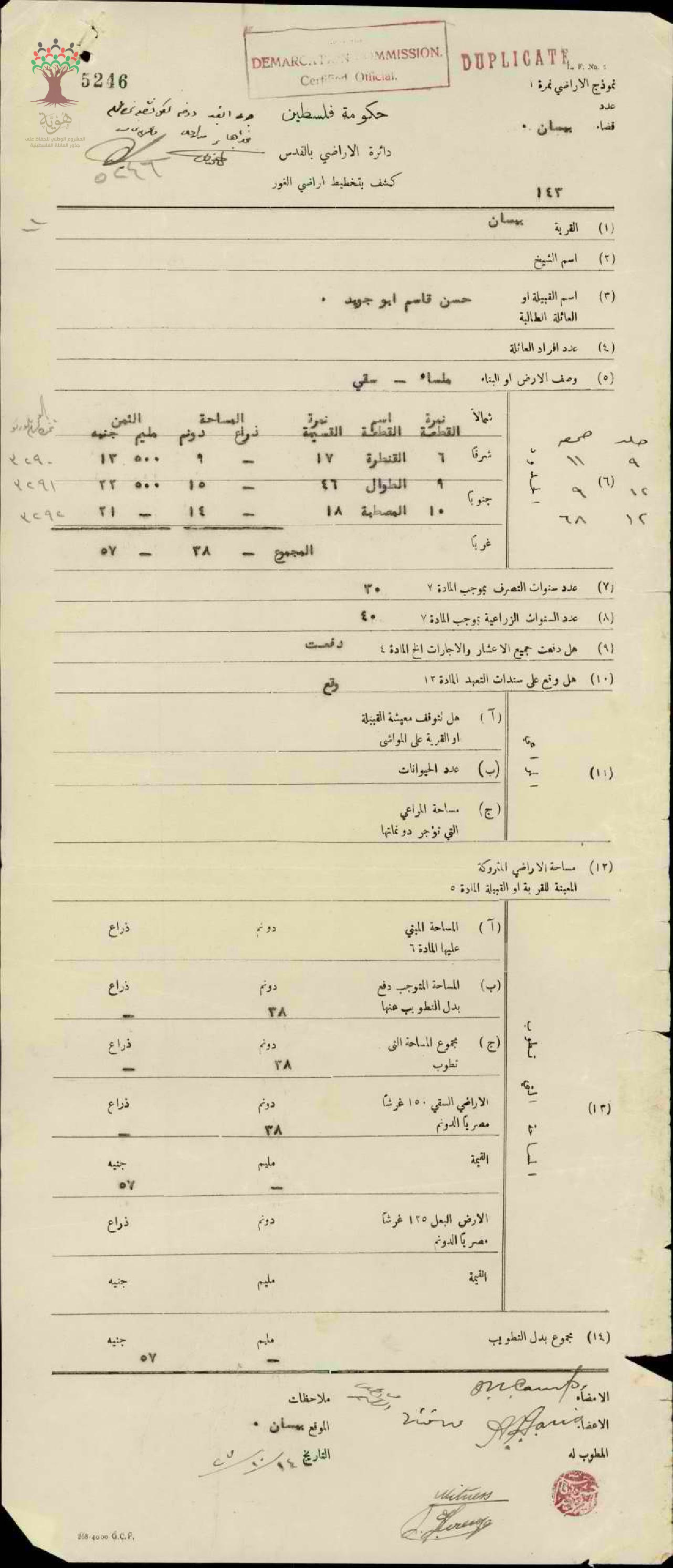 كشف تخطيط أرض حسن قاسم أبو جويد في بيسان
