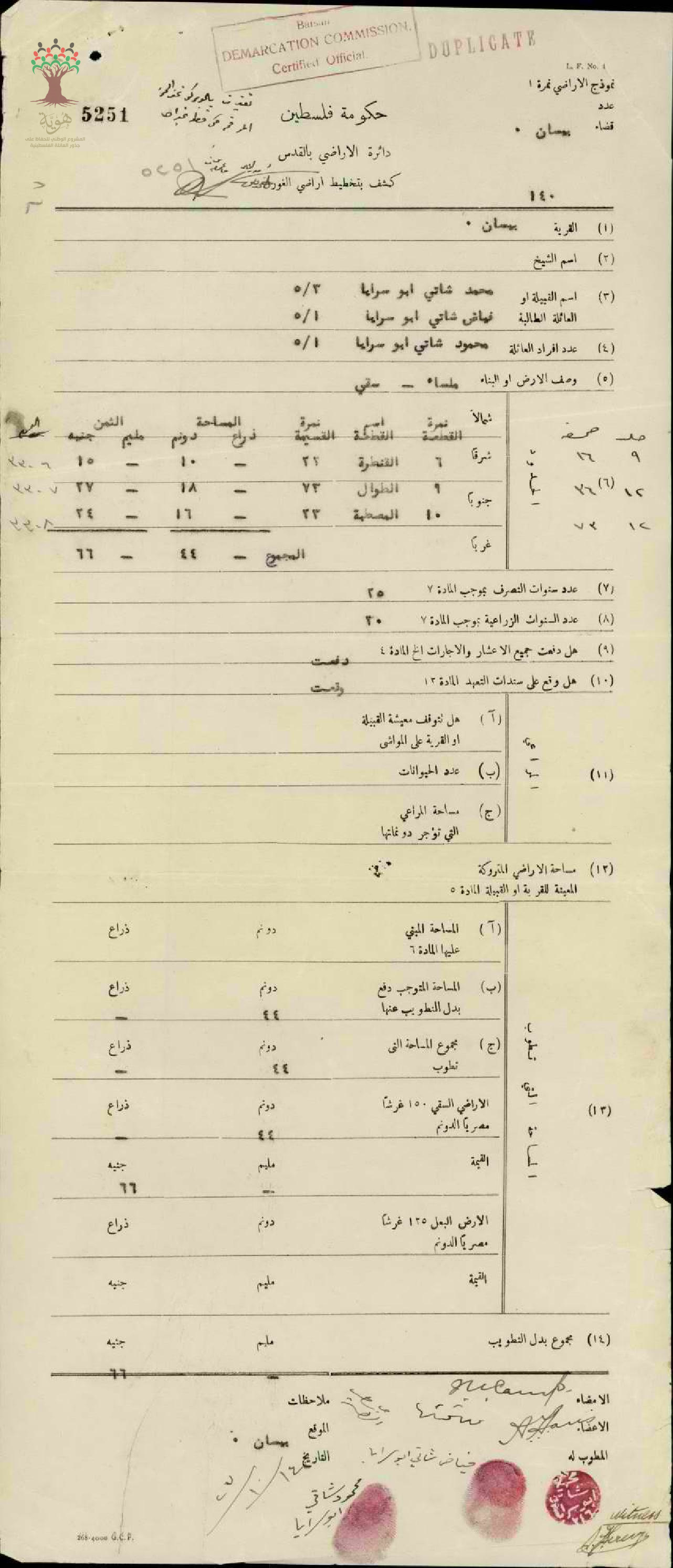 كشف تخطيط أرض أبناء شاتي أبو سرايا في بيسان