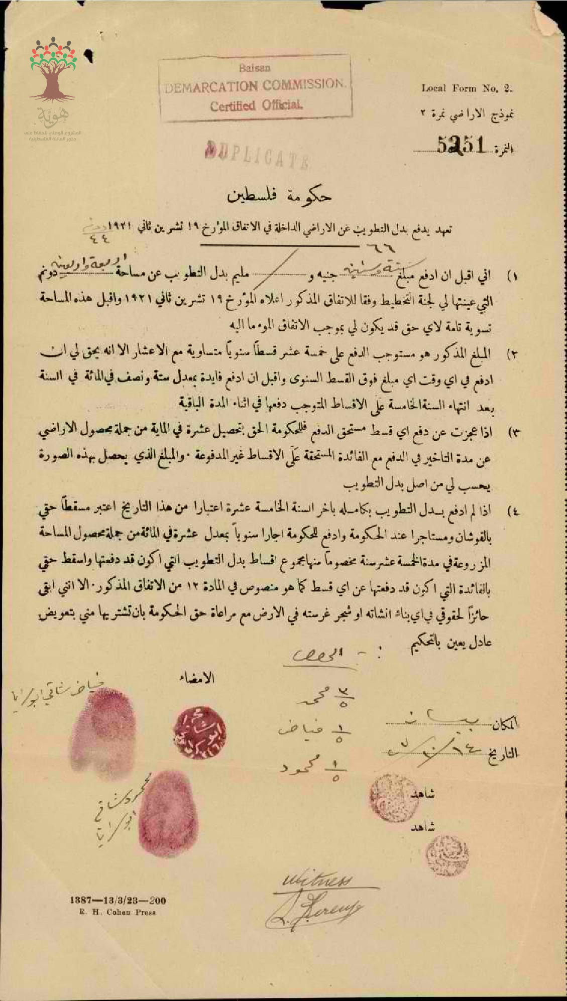 تعهد بدفه تطويب أرض أبناء شاتي ابو سرايا في بيسان