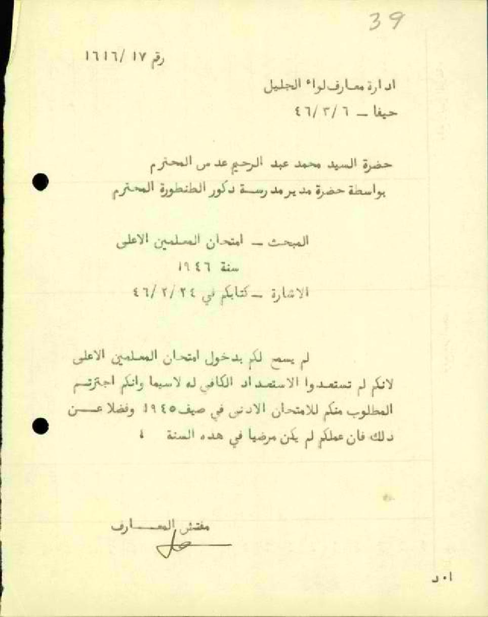 رسائل بخصوص أسباب عدم السماح للمعلم محمد عدس بتقديم امتحان المعلمين الأعلى وذلك بسبب عدم استعداده لذلك
