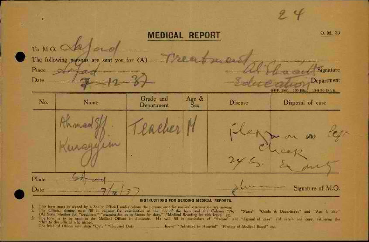 تقرير طبي عن غياب المعلم أحمد كريّم-مدرسة صفد