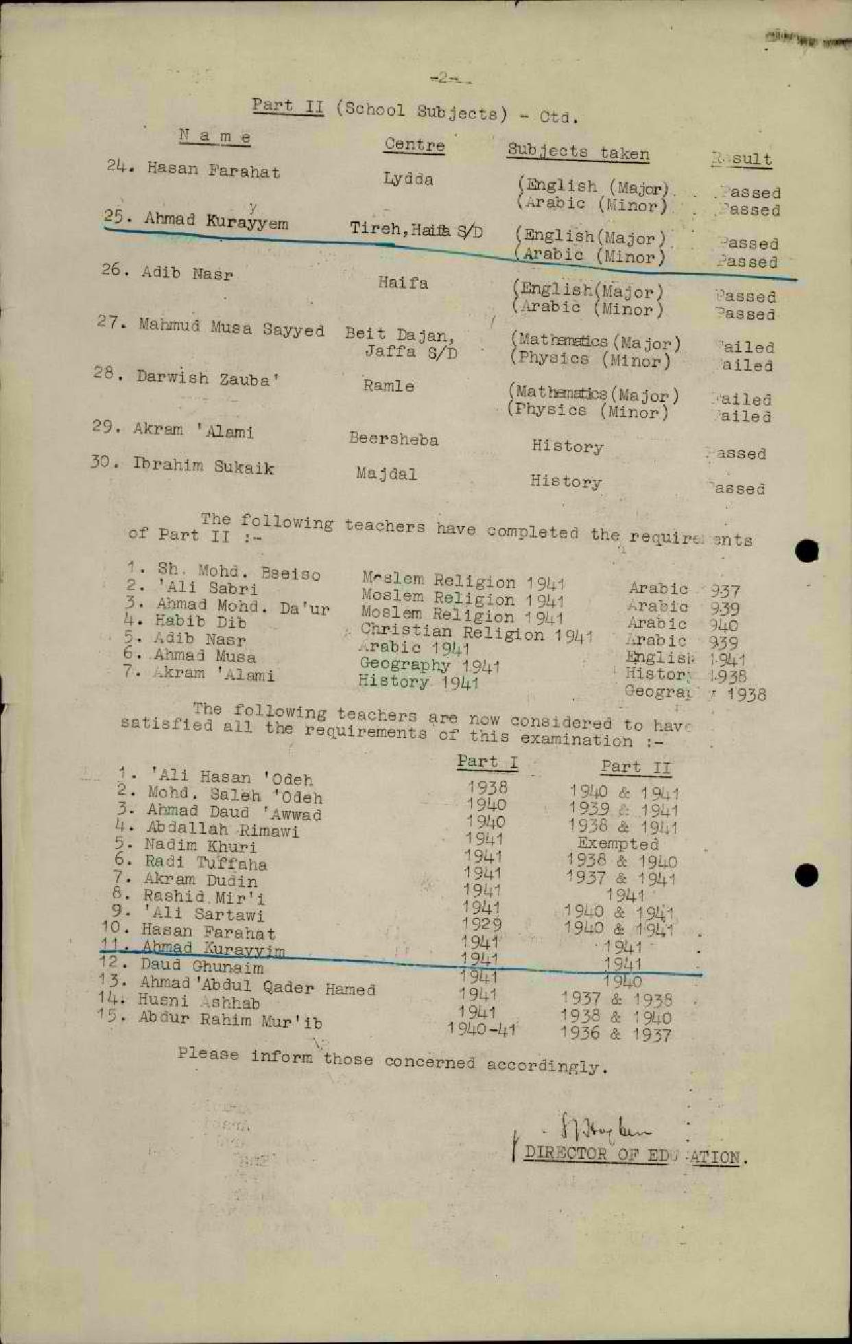 نتائج امتحانات المعلمين القسمين الأول والثاني واجتياز المعلم أحمد كريّم للجزئين