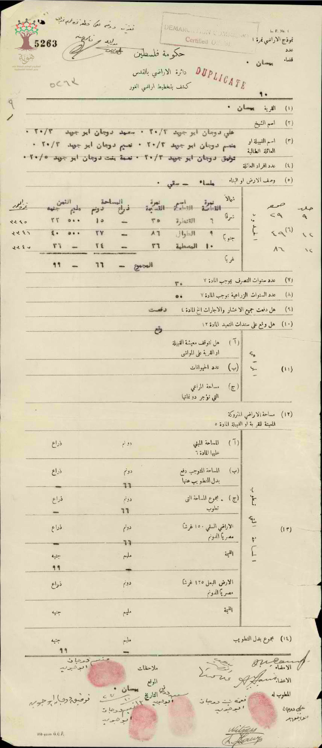 كشف تخطيط أرض أبناء دوجان أبو جويد في بيسان