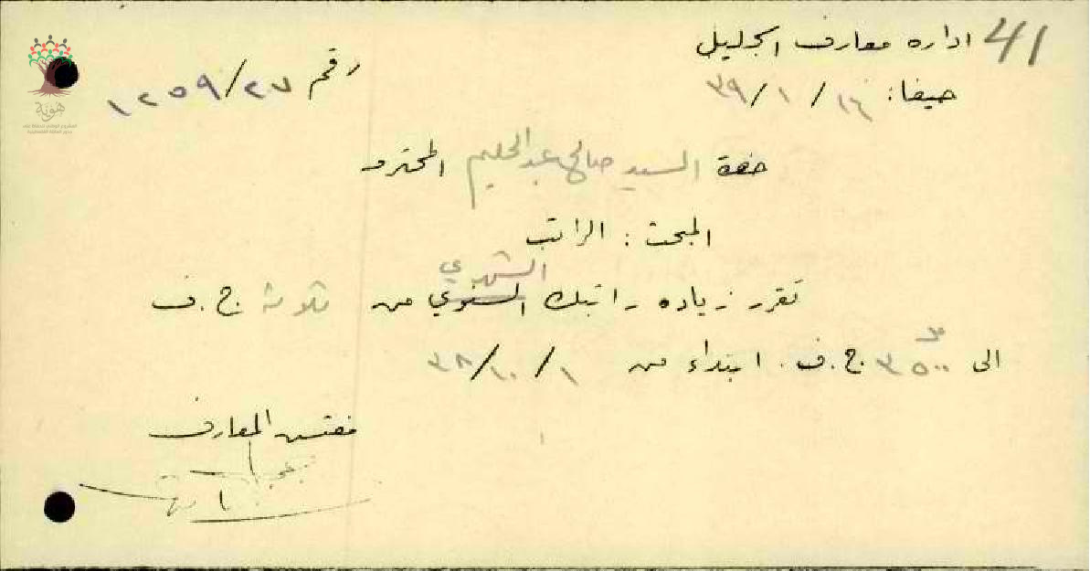 زيادة مرتب المعلم صالح عبد الحليم القدومي - كفر قدوم - مدرسة الشجرة