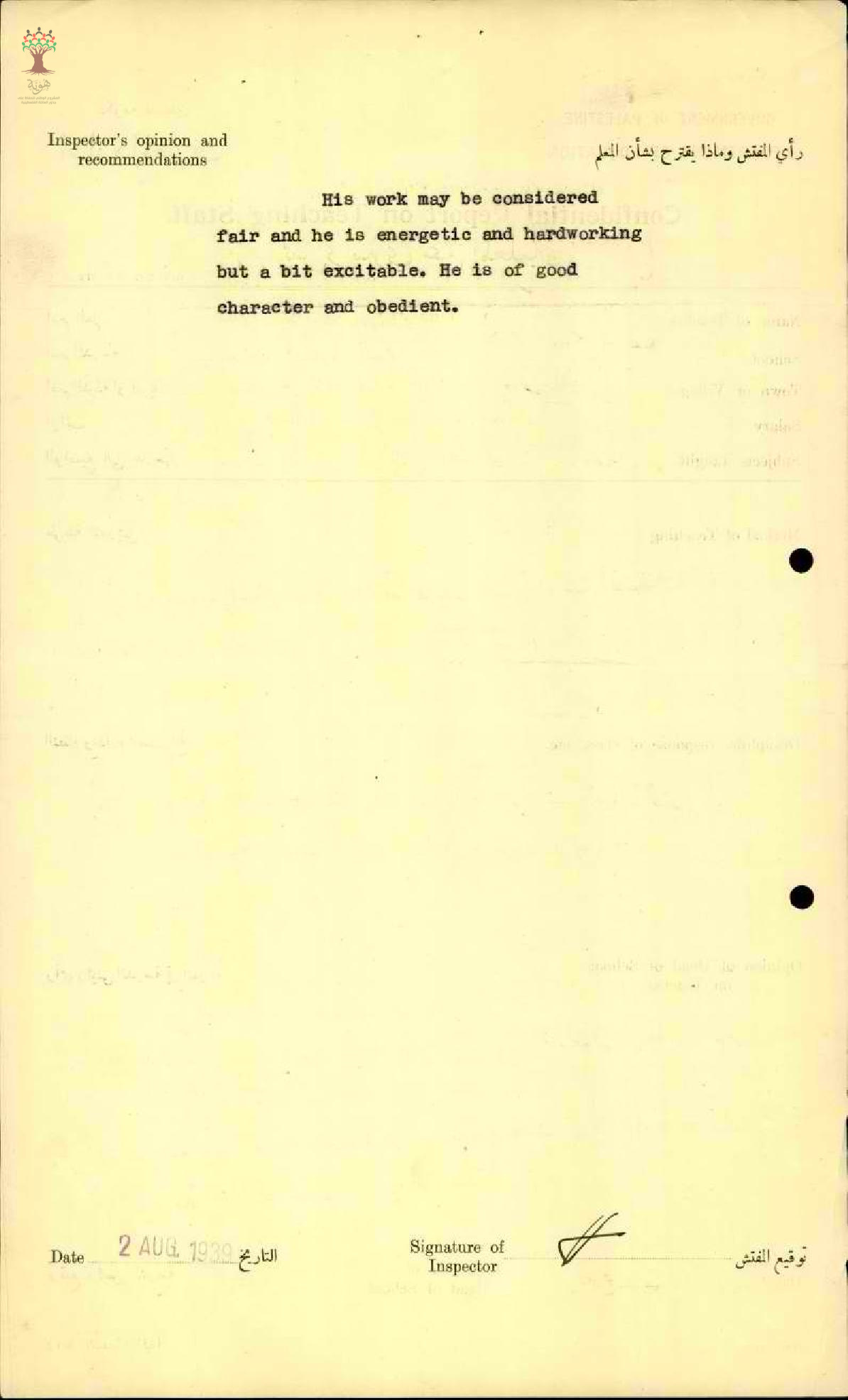 رأي المفتش العام بالمعلم صالح عبد الحليم القدومي - كفر قدوم - مدرسة عبلين