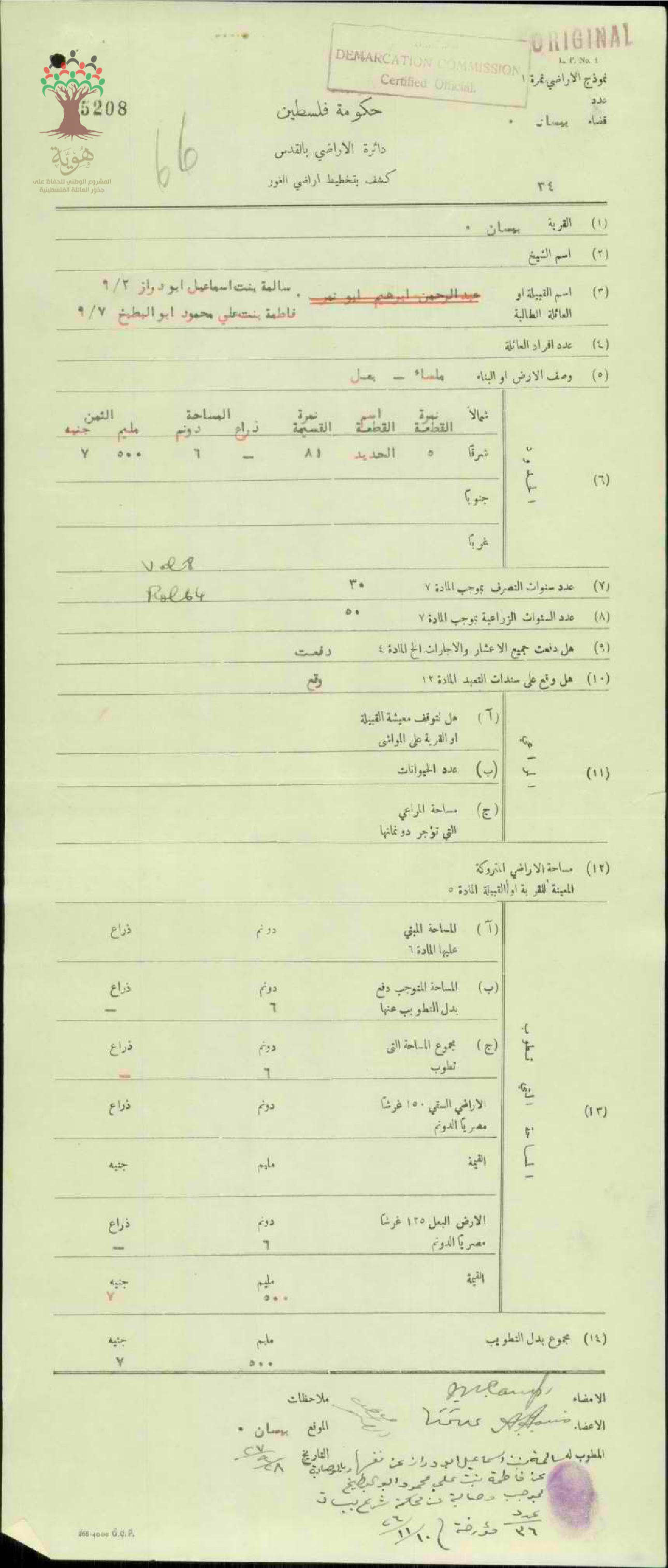 كشف تخطيط أرض سالمة بنت اسماعيل أبو دراز وفاطمة علي محمود أبو بطيخ في بيسان