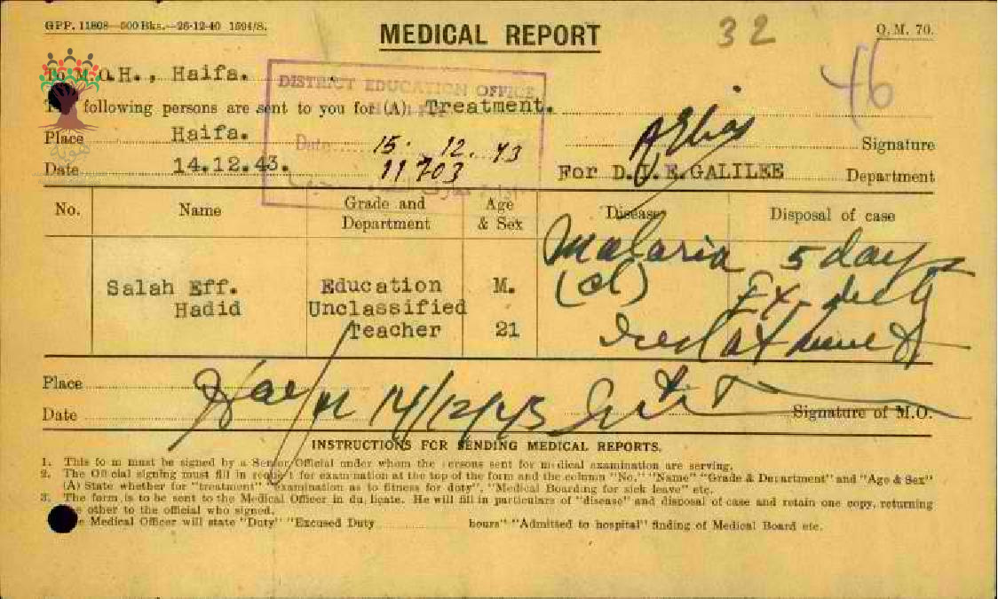 تقرير طبي عن غياب المعلم صلاح حديد-مدرسة الطنطورة