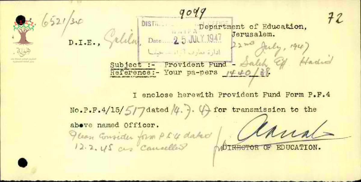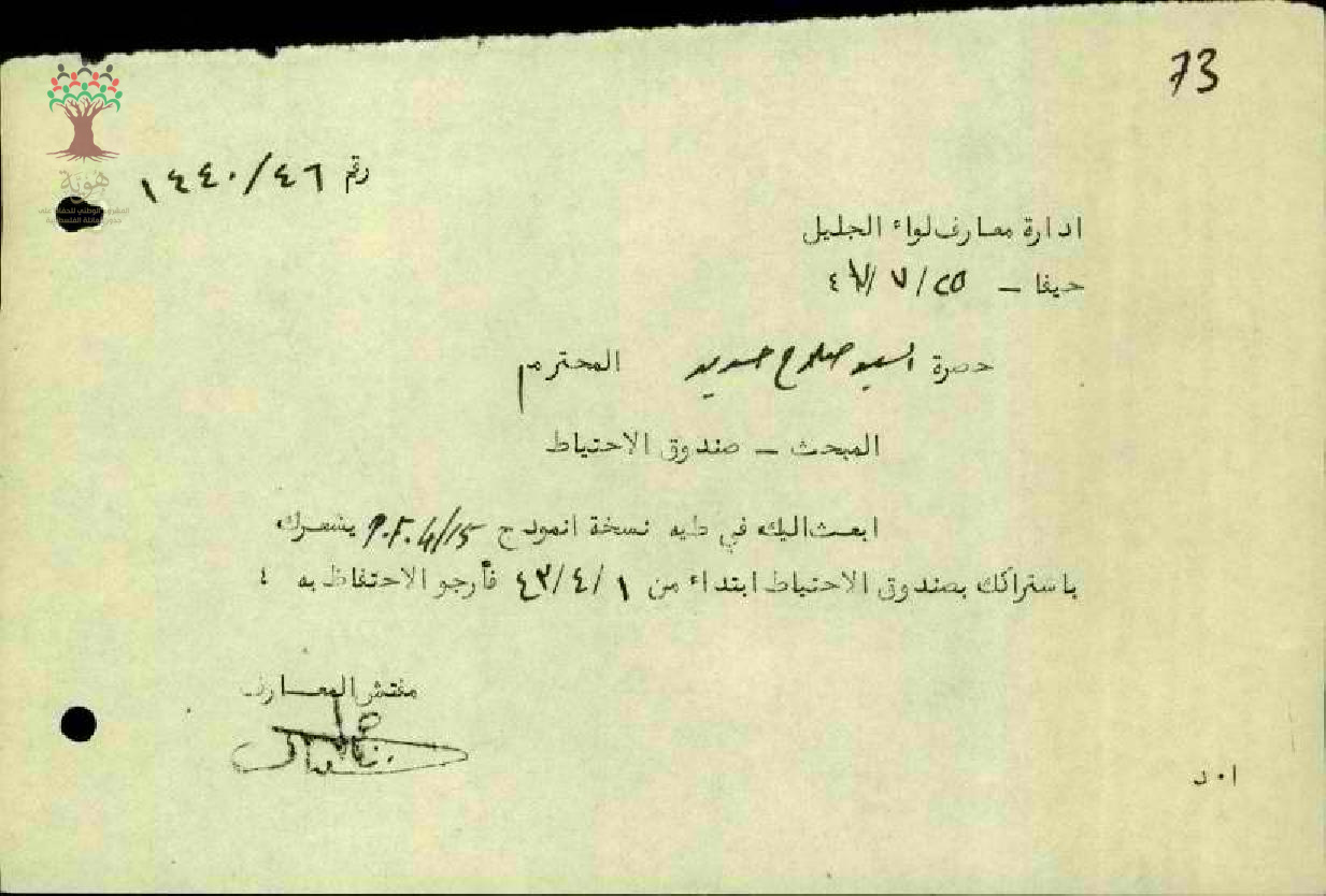 رسائل بخصوص اشتراك المعلم صلاح حديد في صندوق الاحتياط