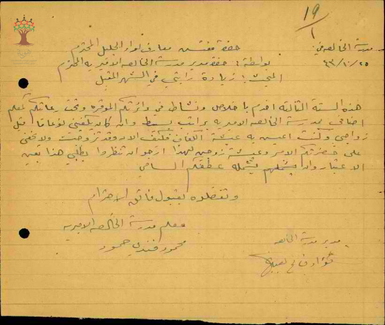 طلب زيادة مرتب مقدم من قبل الاستاذ محمود فندي حمود - الخالصة - مدرسة الخالصة