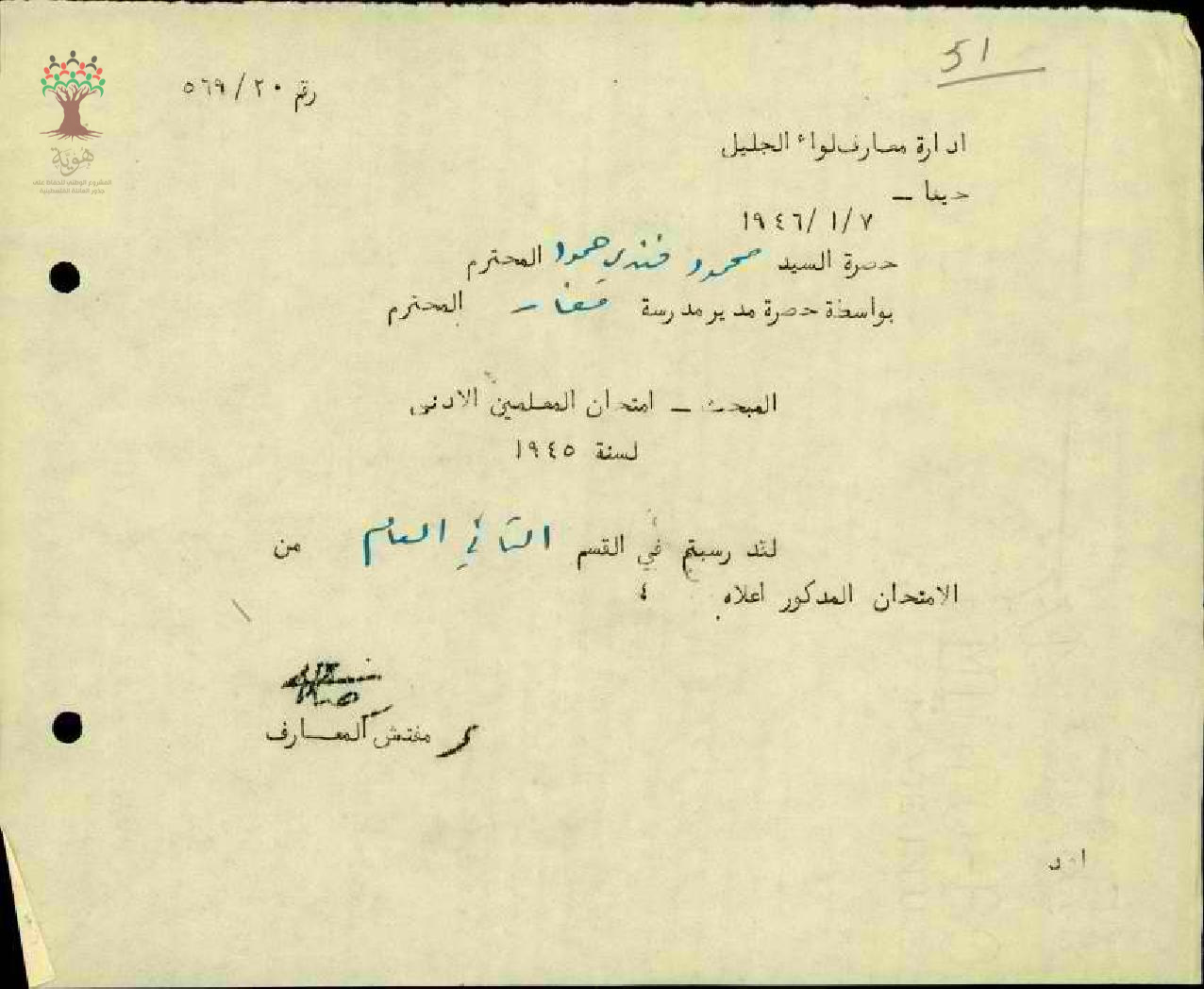 رسوب المعلم محمود فندي حمود - الخالصة - مدرسة المغار