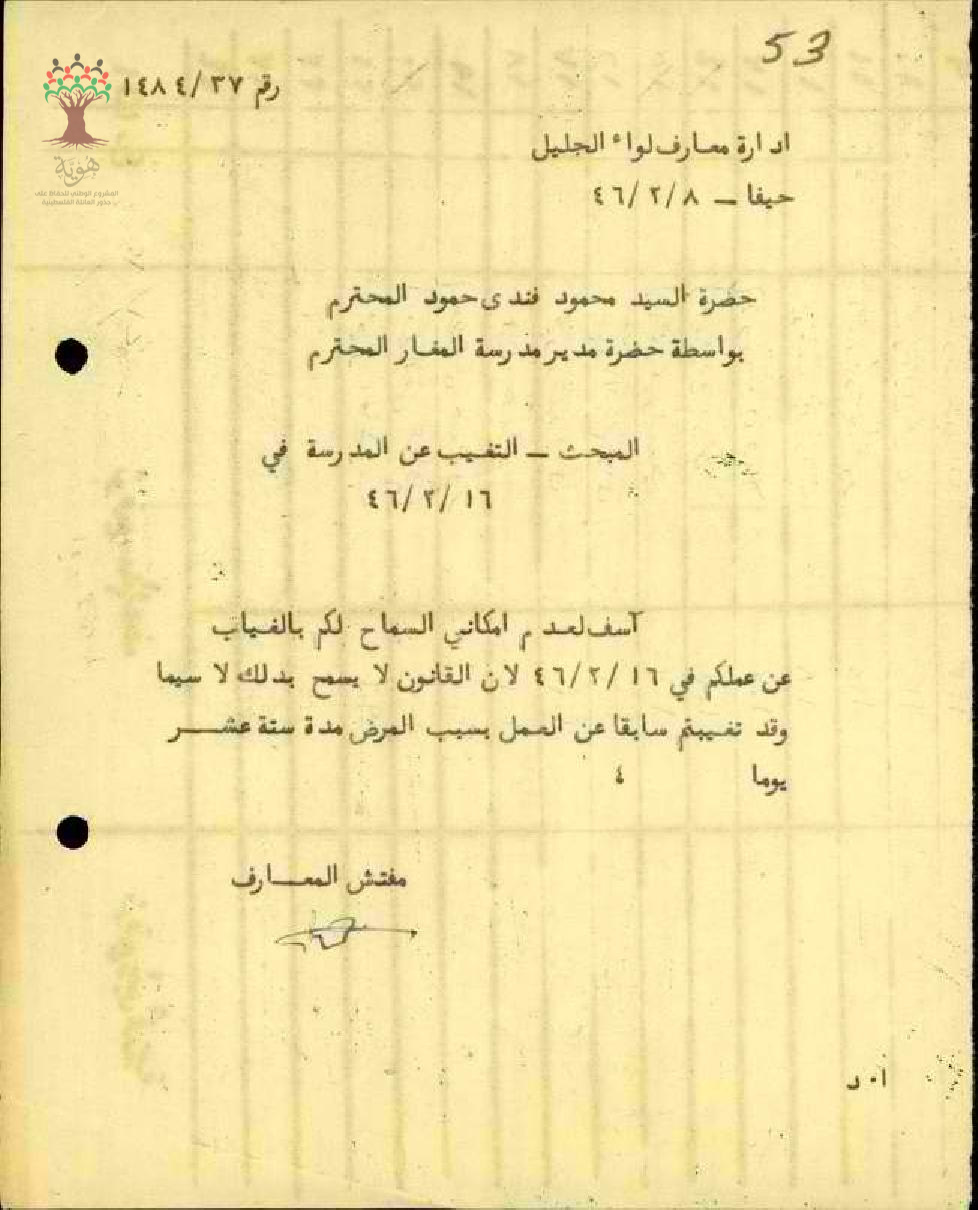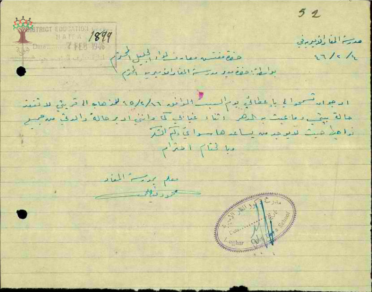 طلب عطلة محمود فندي حمود - الخالصة - مدرسة المغار