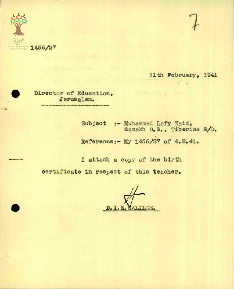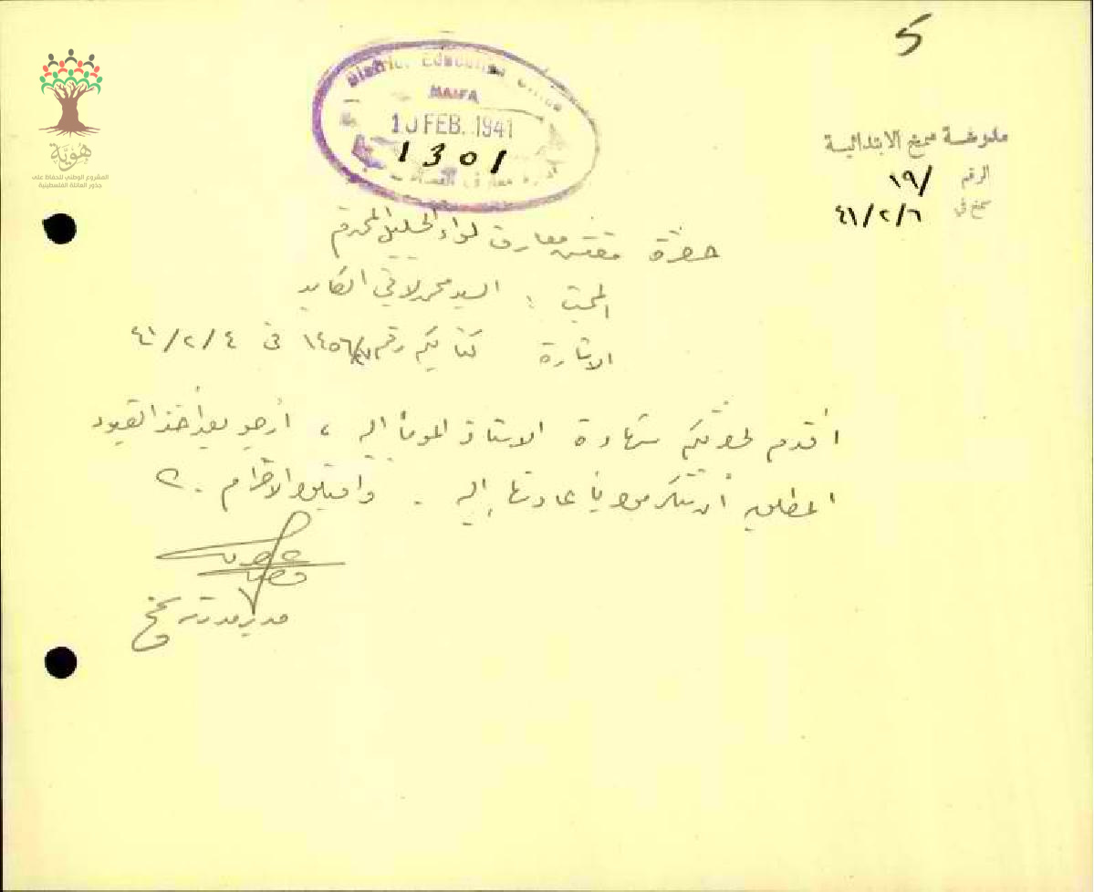 رسائل بخصوص أوراق تعيين المعلم محمد لافي كايد