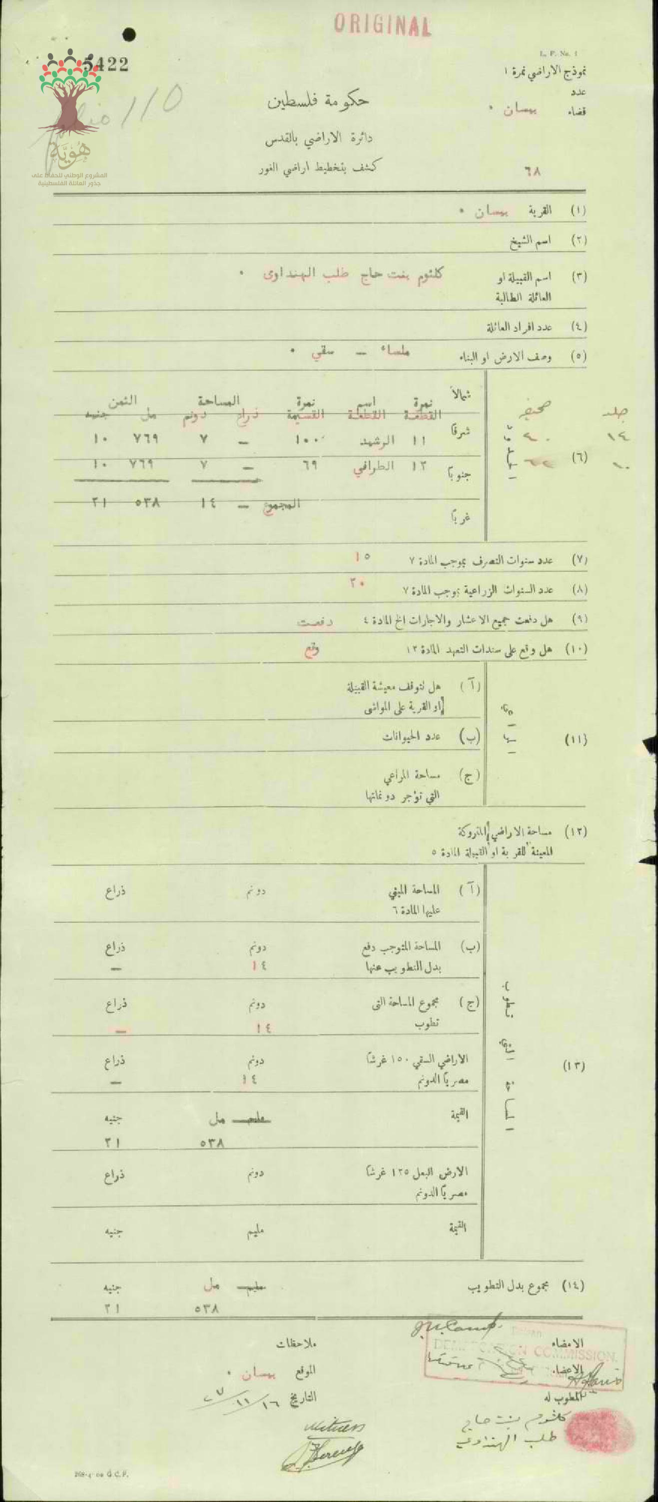 كشف تخطيط أرض كلثوم حاج طلب الهنداوي في بيسان
