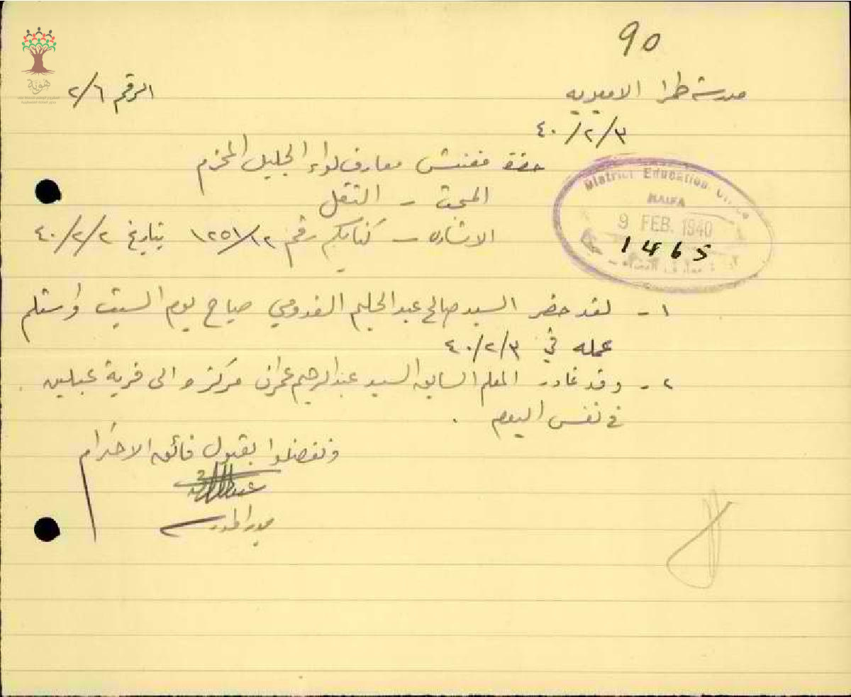 باشر المعلم صالح القدومي العمل في مدرسة طمرة - كفر قدوم