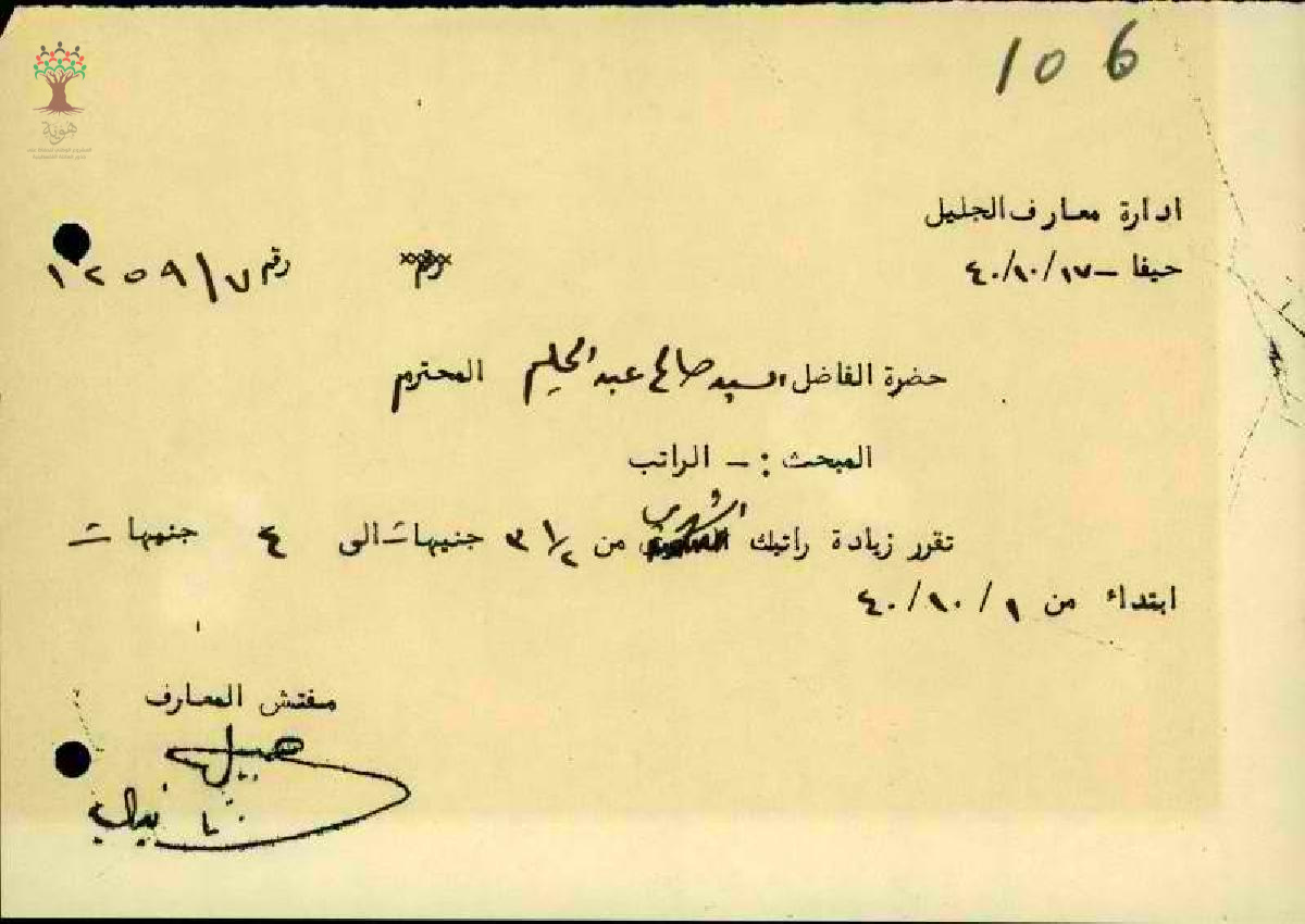زيادة مرتب المعلم صالح عبد الحليم القدومي - كفر قدوم - مدرسة طمرة