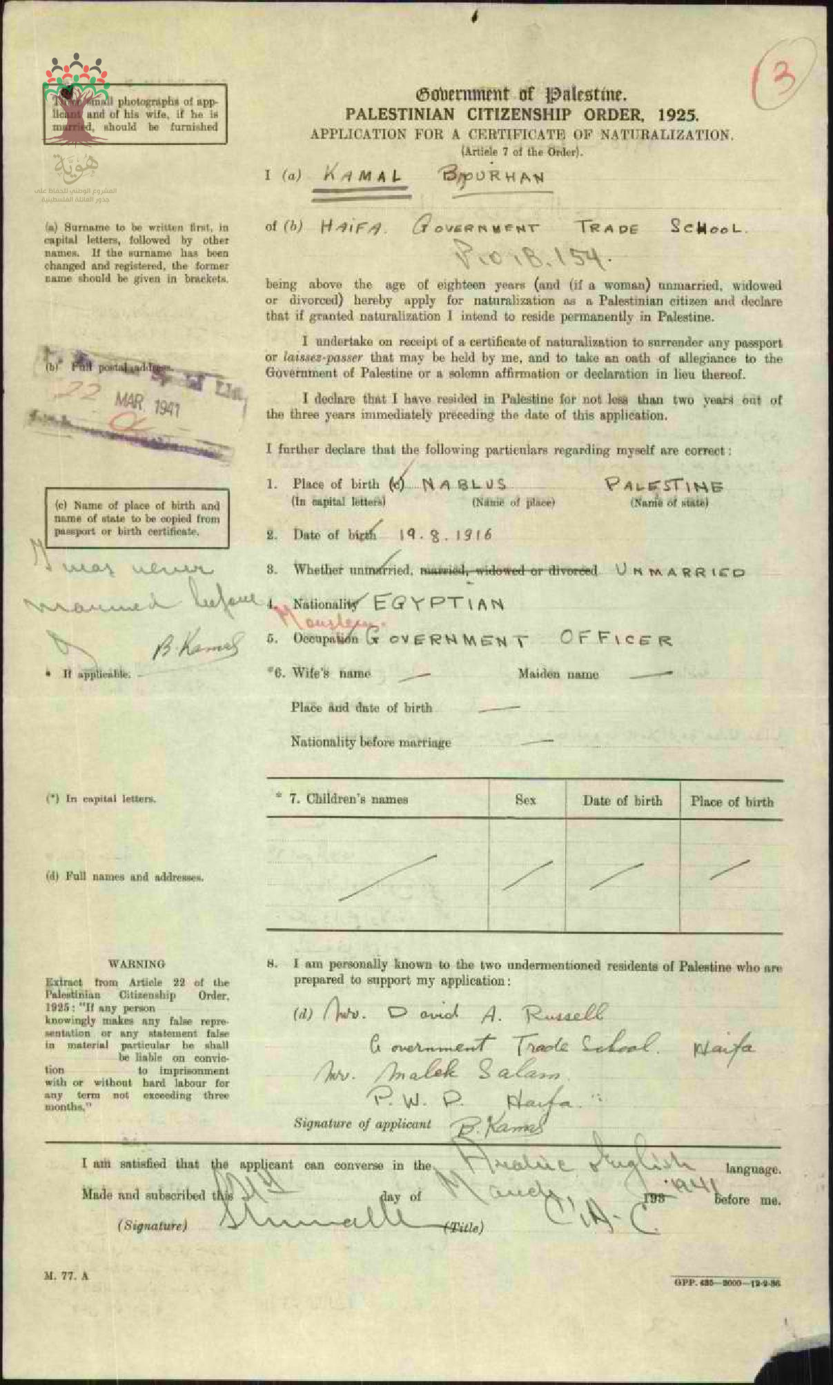 طلب الجنسية الفلسطينية - برهان كمال - نابلس / مصر