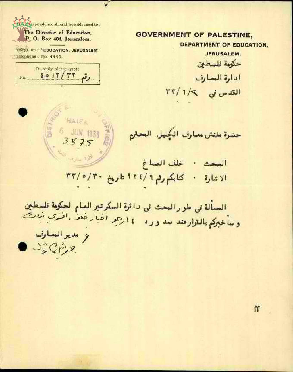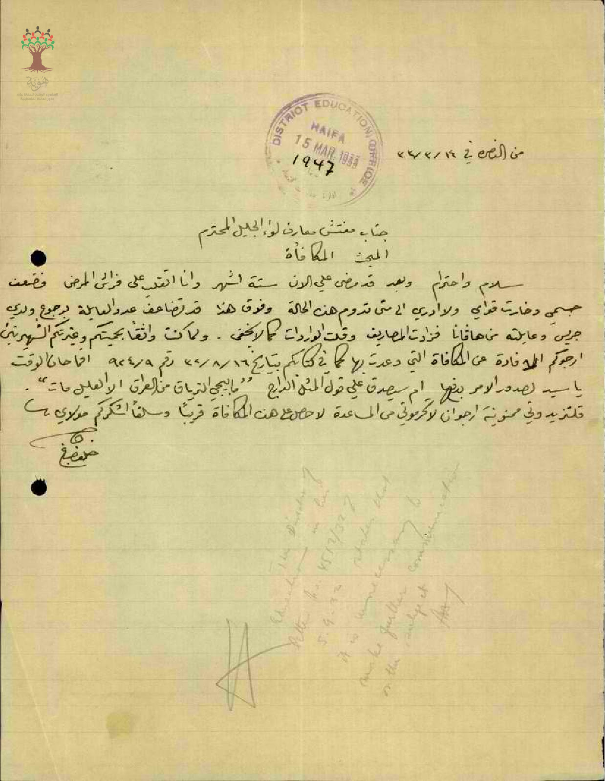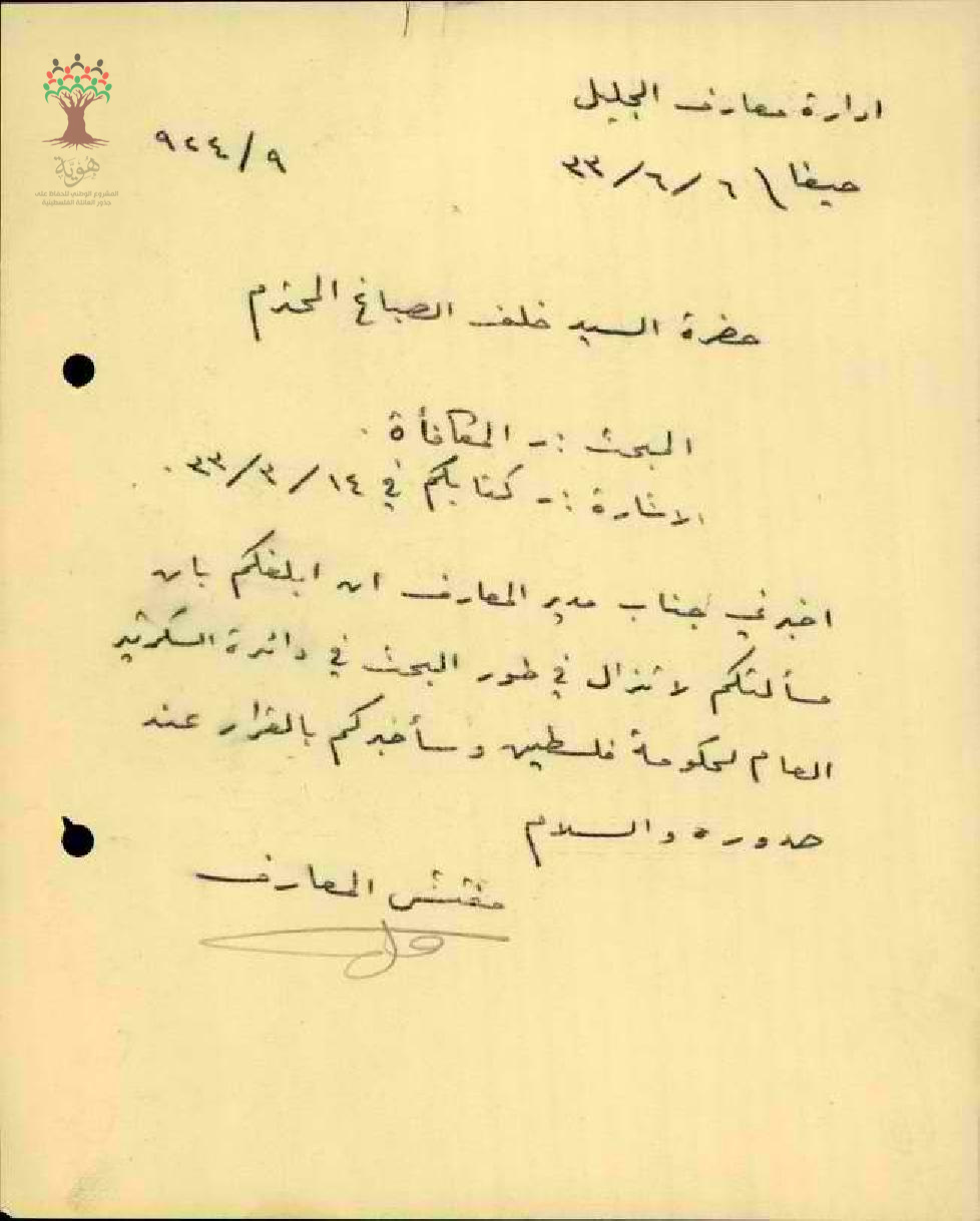 مجموعة رسائل بخصوص المكافأة المالية للمعلم خلف صباغ بعد التقاعد