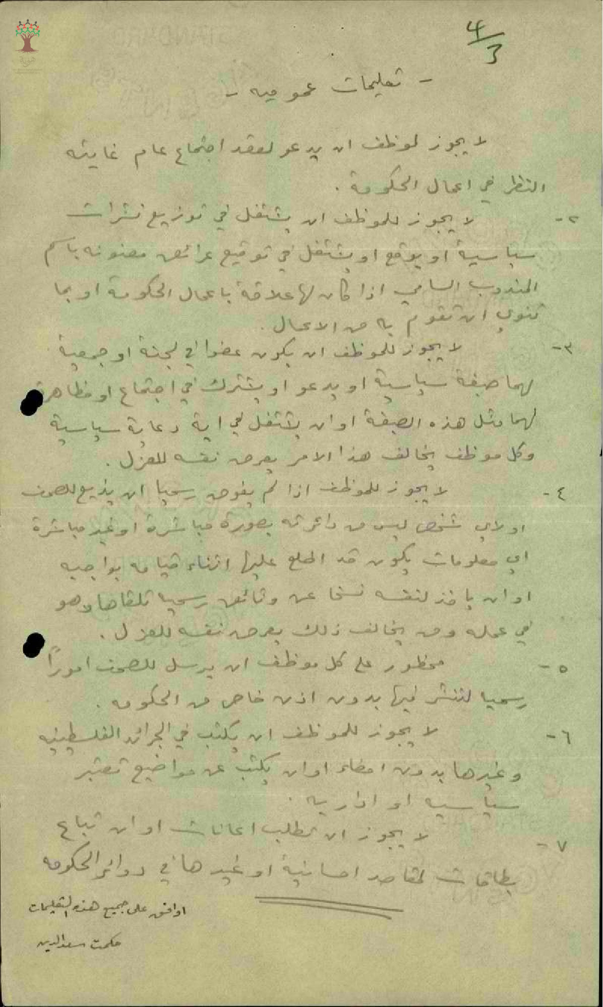 تعليمات عمومية من قبل دائرة المعارف للمعلم حكمت سعد الدين - صفد - مدرسة صفد