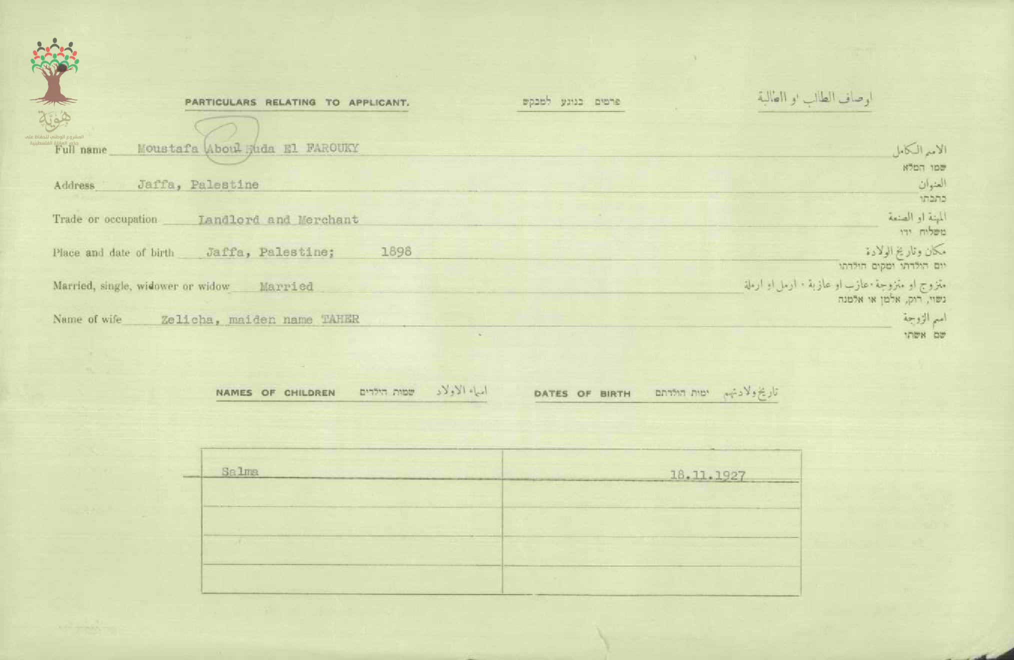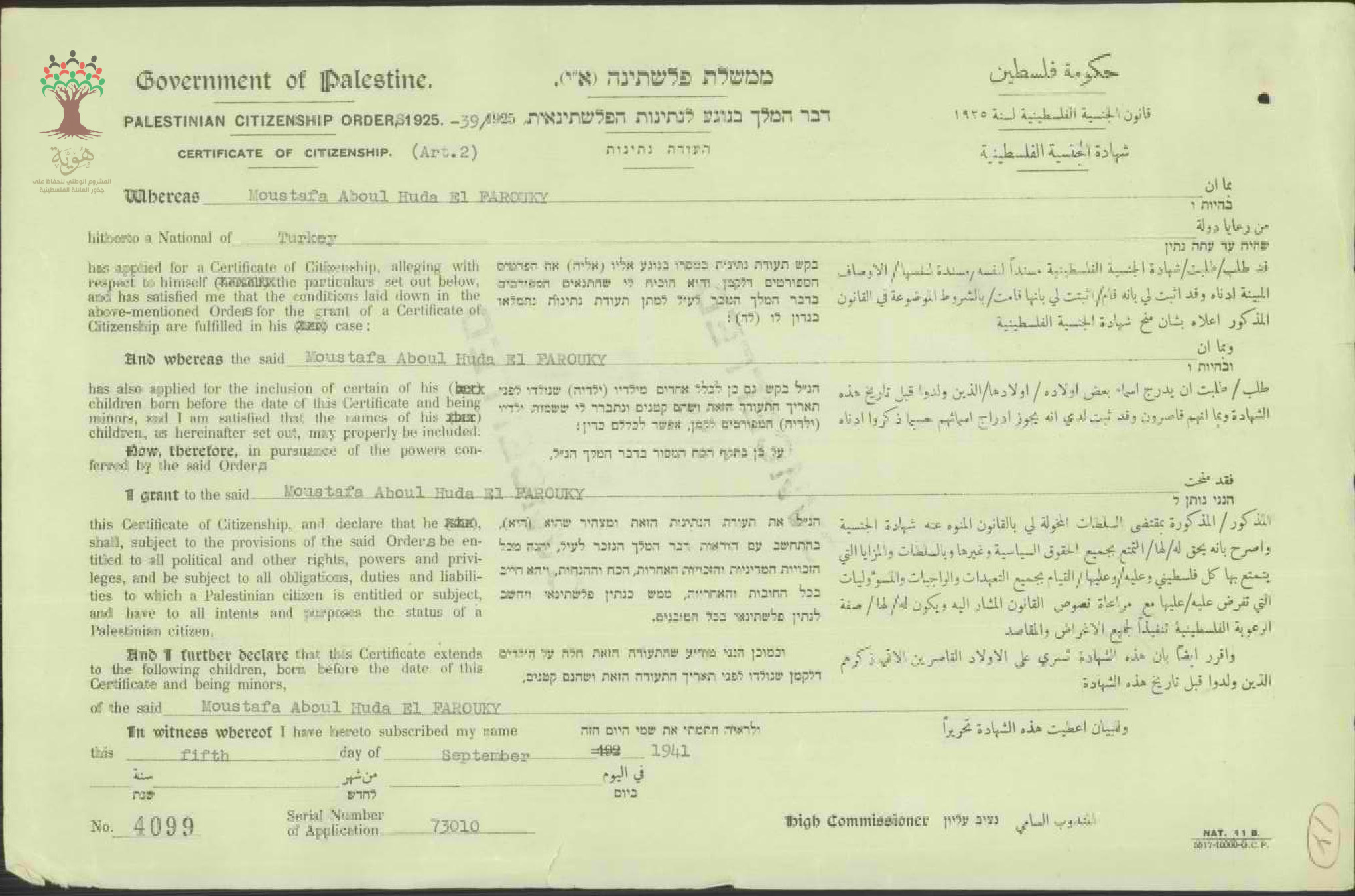 مصطفى الفاروقي يوقع يمين الإخلاص للحصول على شهادة الجنسية الفلسطينية