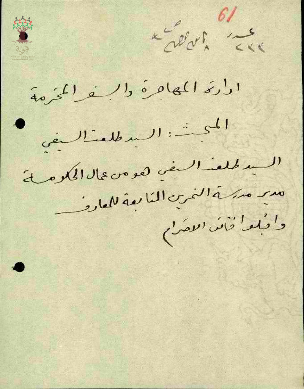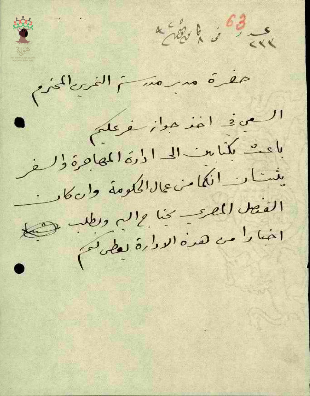 رسائل بخصوص السماح للمعلم طلعت السيفي بالحصول على جواز سفره