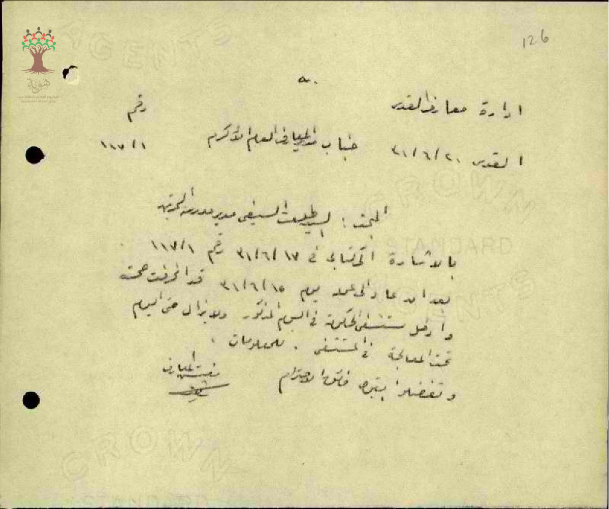 رسائل بخصوص تغيب المعلم طلعت السيفي بسبب دخوله الى مستشفى الحكومة