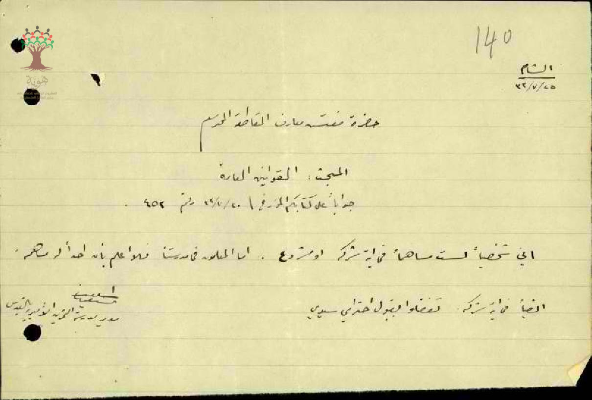 رسالة من المعلم طلعت السيفي الى مفتش المعارف بخصوص القوانين العامة