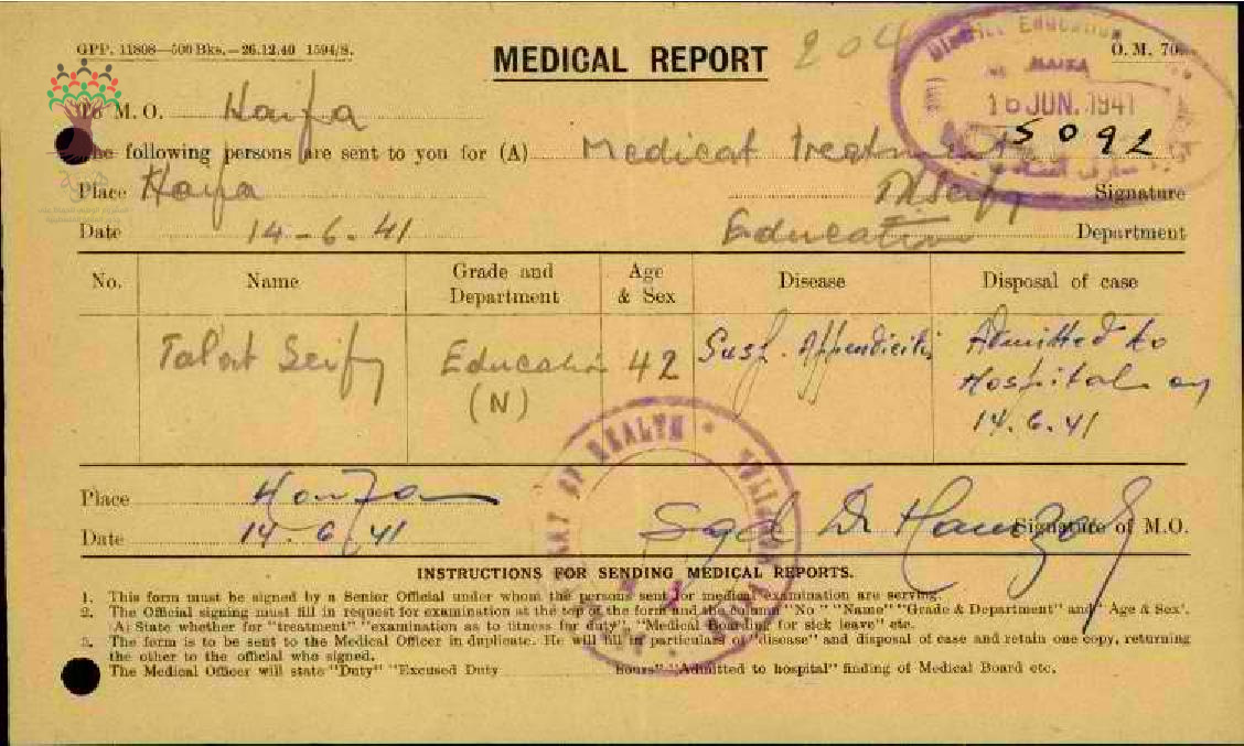 تقرير طبي عن دخول المعلم طلعت السيفي الى المستشفى